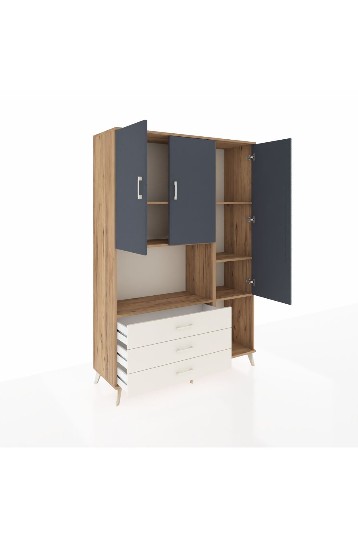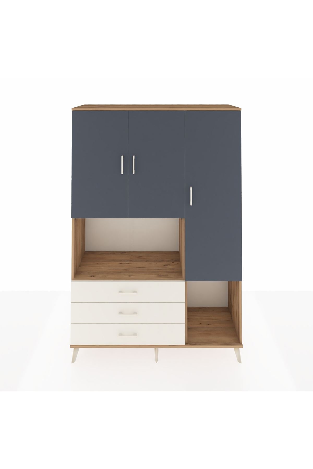 Hyperion Dolap 6 Raflı 3 Çekmeceli 3 Kapaklı 132x44x195 Çam-Antrasit/Aytaşı