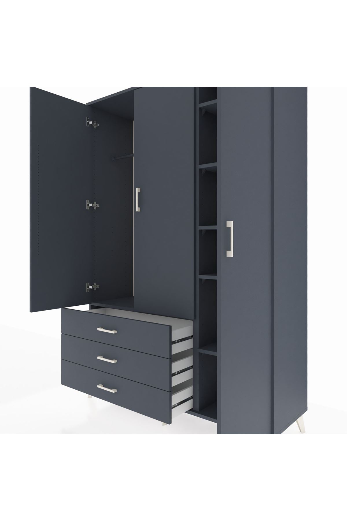 Hyperion Dolap 6 Raflı 3 Çekmeceli Tek Askılı 132x44x195 Antrasit-Antrasit/Antrasit
