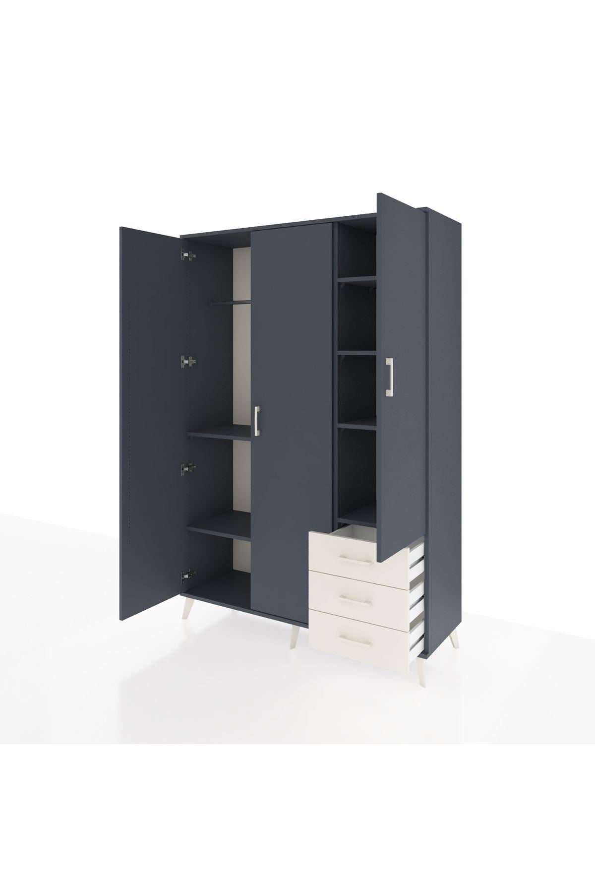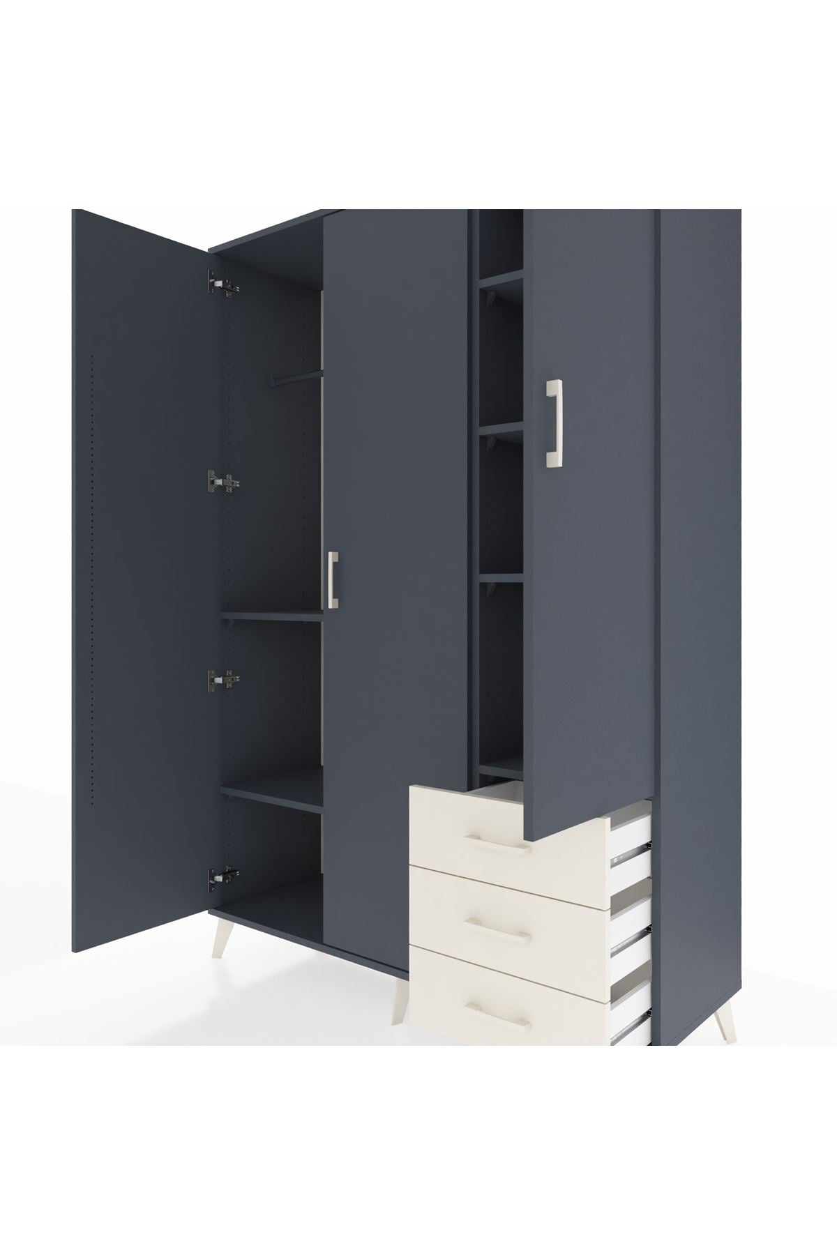 Hyperion Dolap 6 Raflı 3 Çekmeceli Tek Askılı 132x44x195 Antrasit-Antrasit/Aytaşı