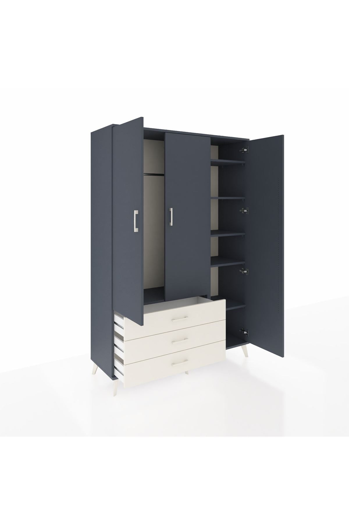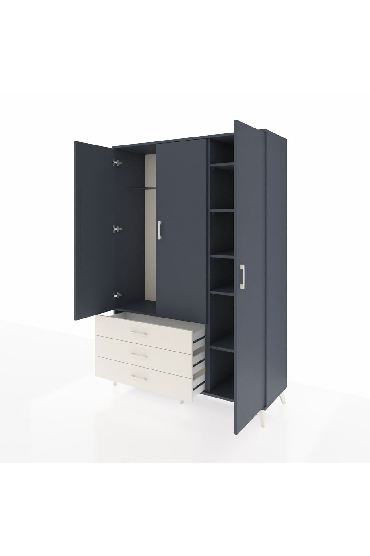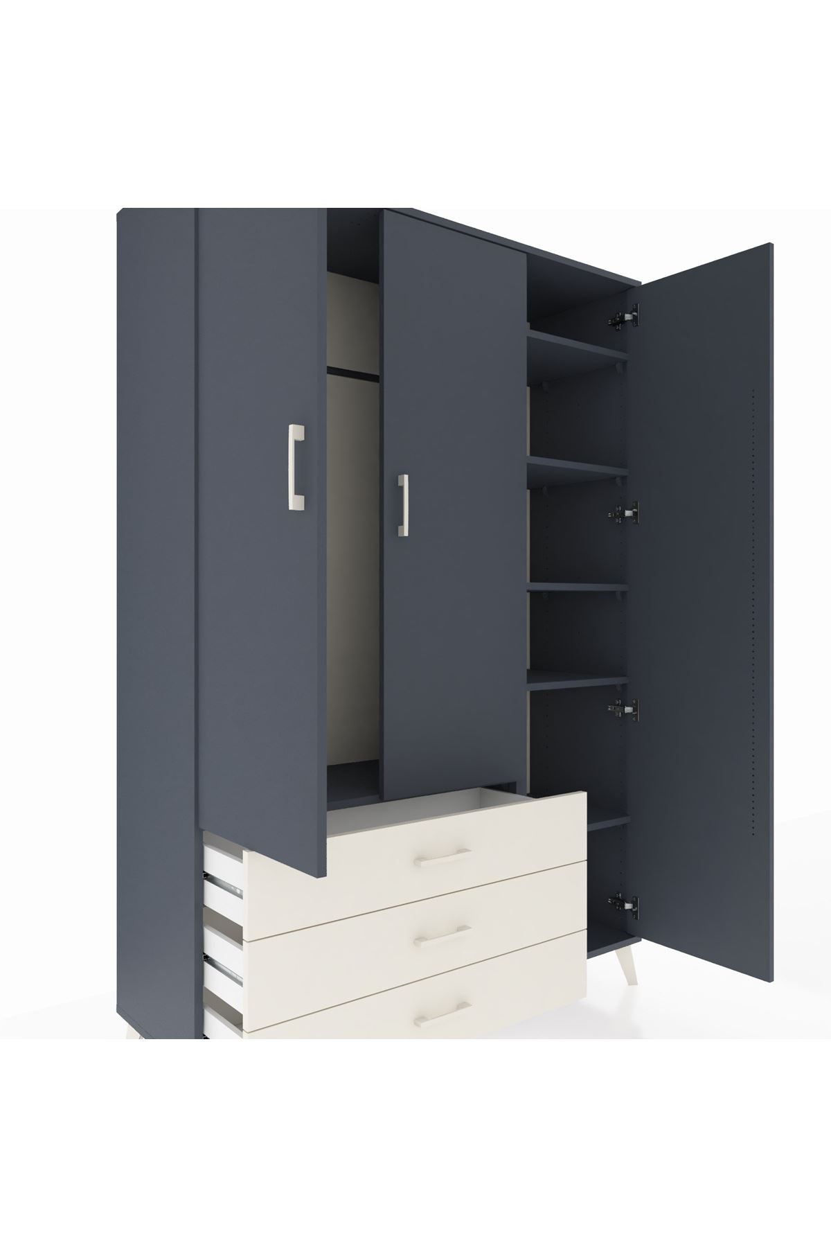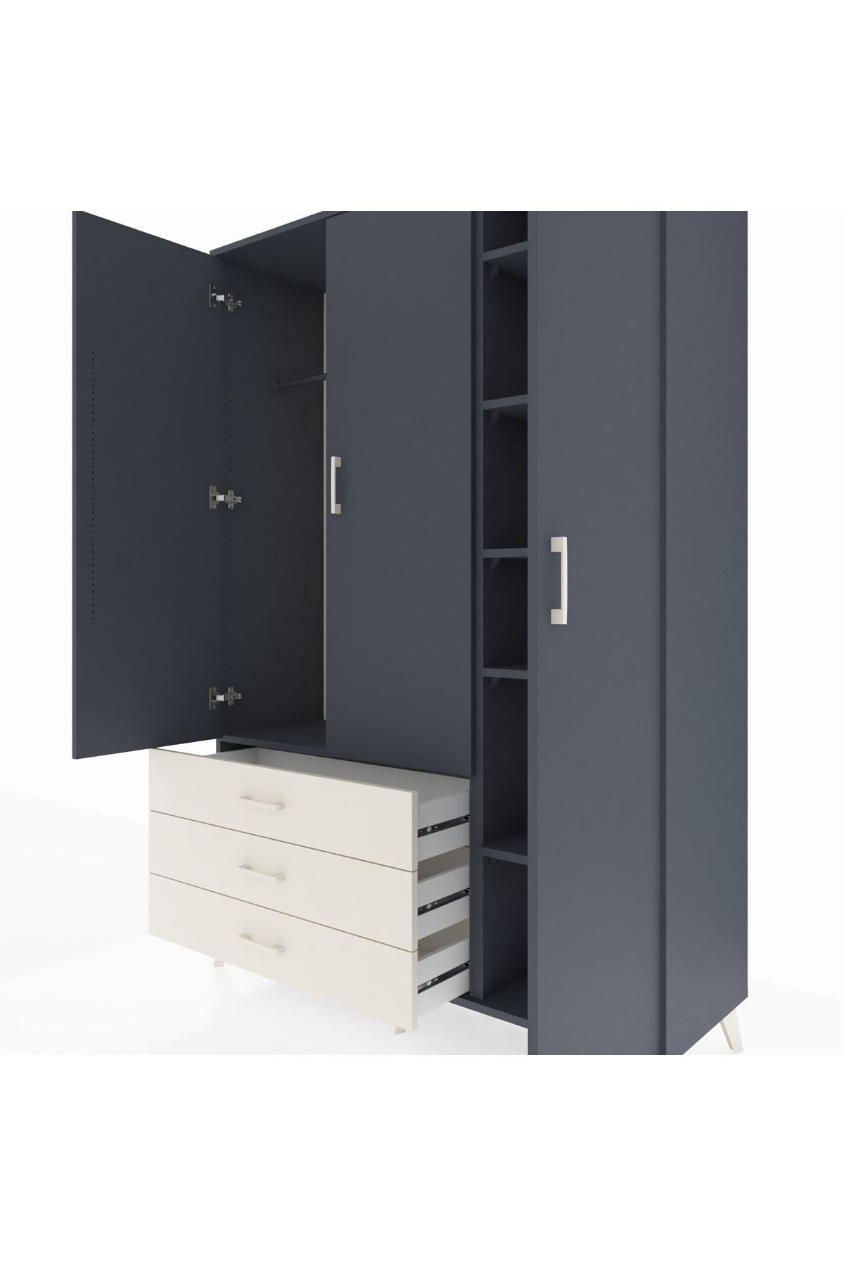 Hyperion Dolap 6 Raflı 3 Çekmeceli Tek Askılı 132x44x195 Antrasit-Antrasit/Aytaşı