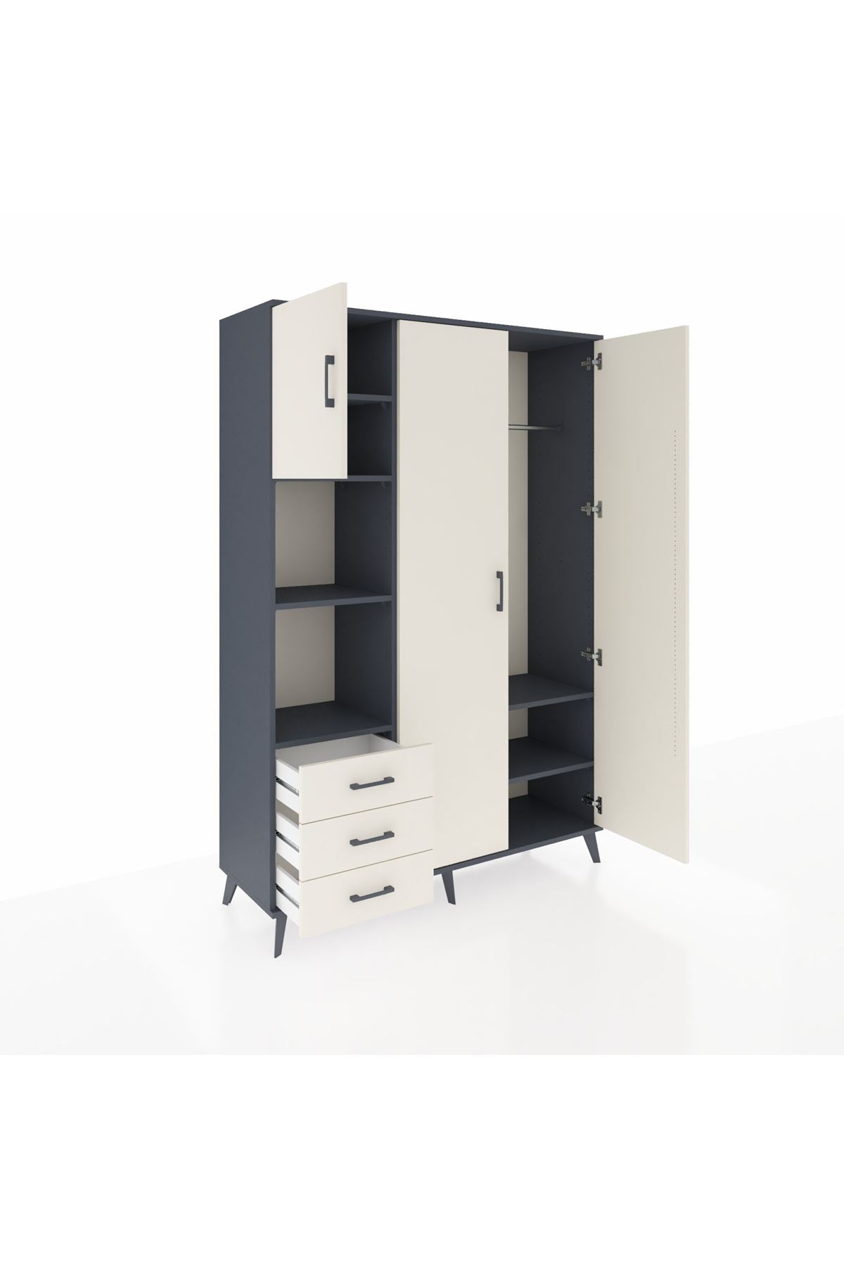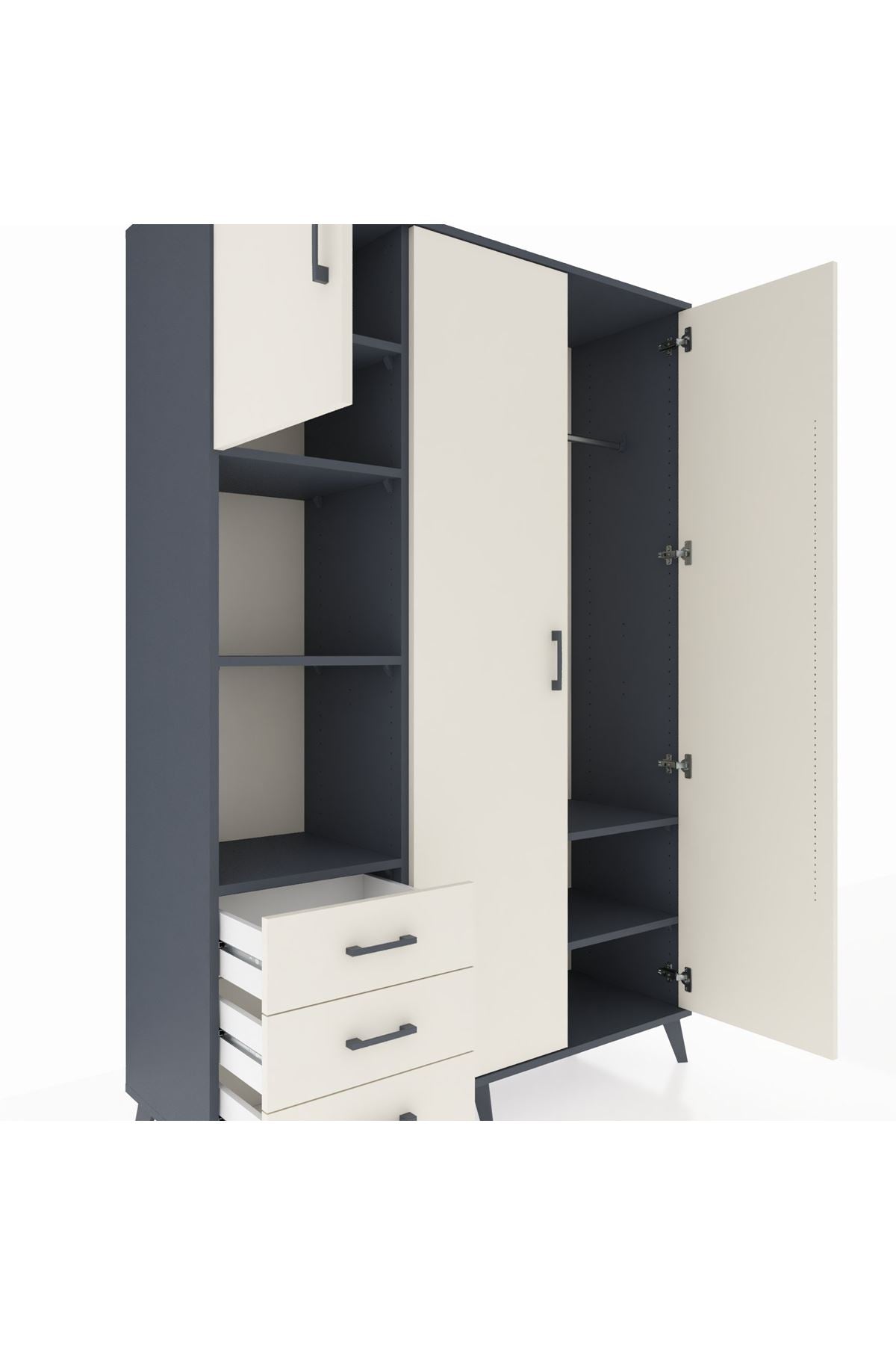Hyperion Dolap 6 Raflı 3 Çekmeceli Tek Askılı 132x44x195 Antrasit-Aytaşı/Aytaşı