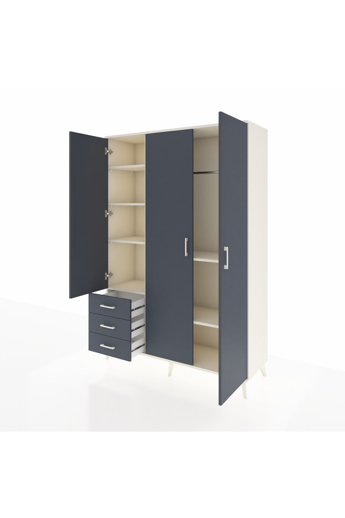 Geniş iç hacmi ve ayarlanabilir raf sistemi sayesinde hem katlanmış kıyafetlerinizi hem de saklama kutularınızı düzenleyebilirsiniz. Tek askılık yüksekliği ceketler, elbiseler ve uzun pardesüler için uygundur. Alt bölümdeki çekmeceler çorap, iç giyim ve küçük aksesuarlar için düzen sağlar; çekmece içi düzenleyicilerle kullanım daha da kişiselleştirilebilir. Metal ayaklar zemin koruması sağlarken dolabı kolayca temizleyebilmenize yardımcı olur. 1. sınıf suntalam yüzeyler nem ve darbelere karşı dayanıklıdır, günlük kullanıma uygun sağlamlık sunar.