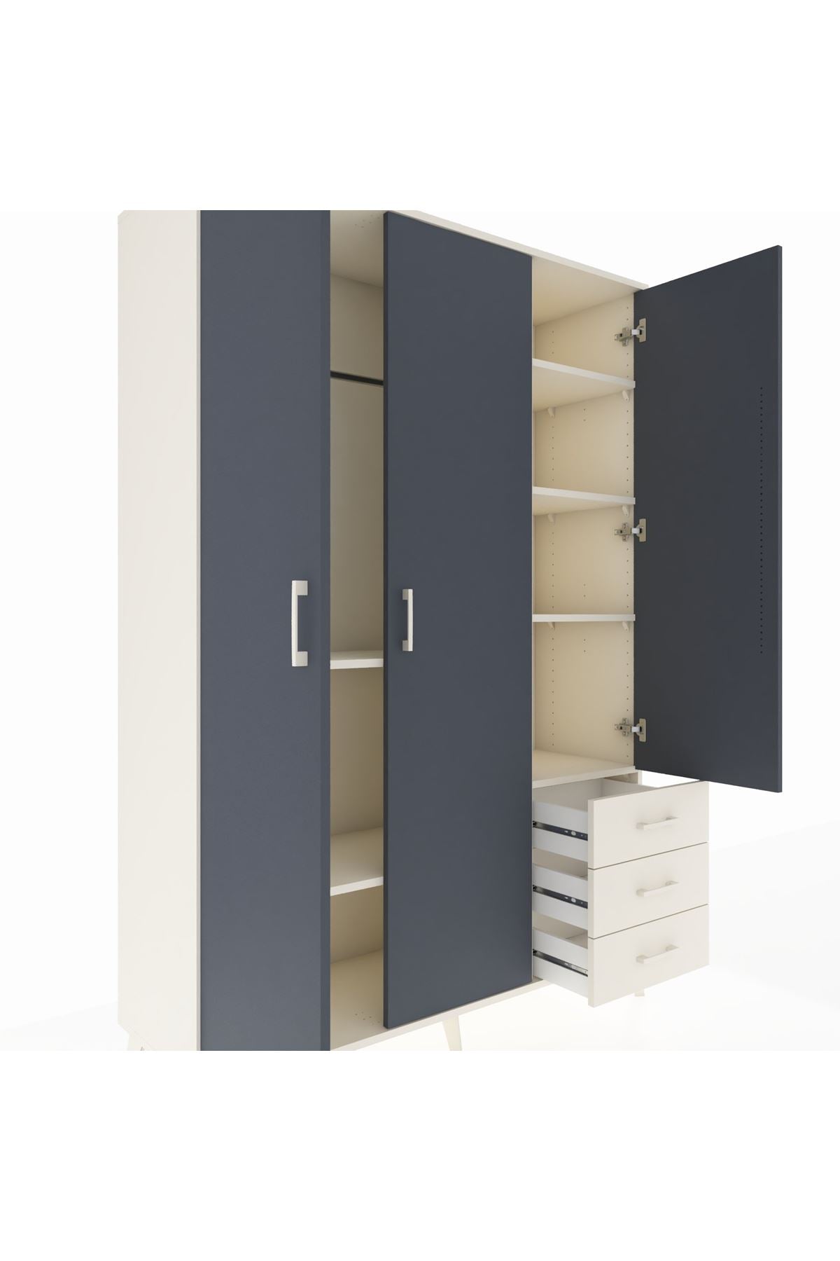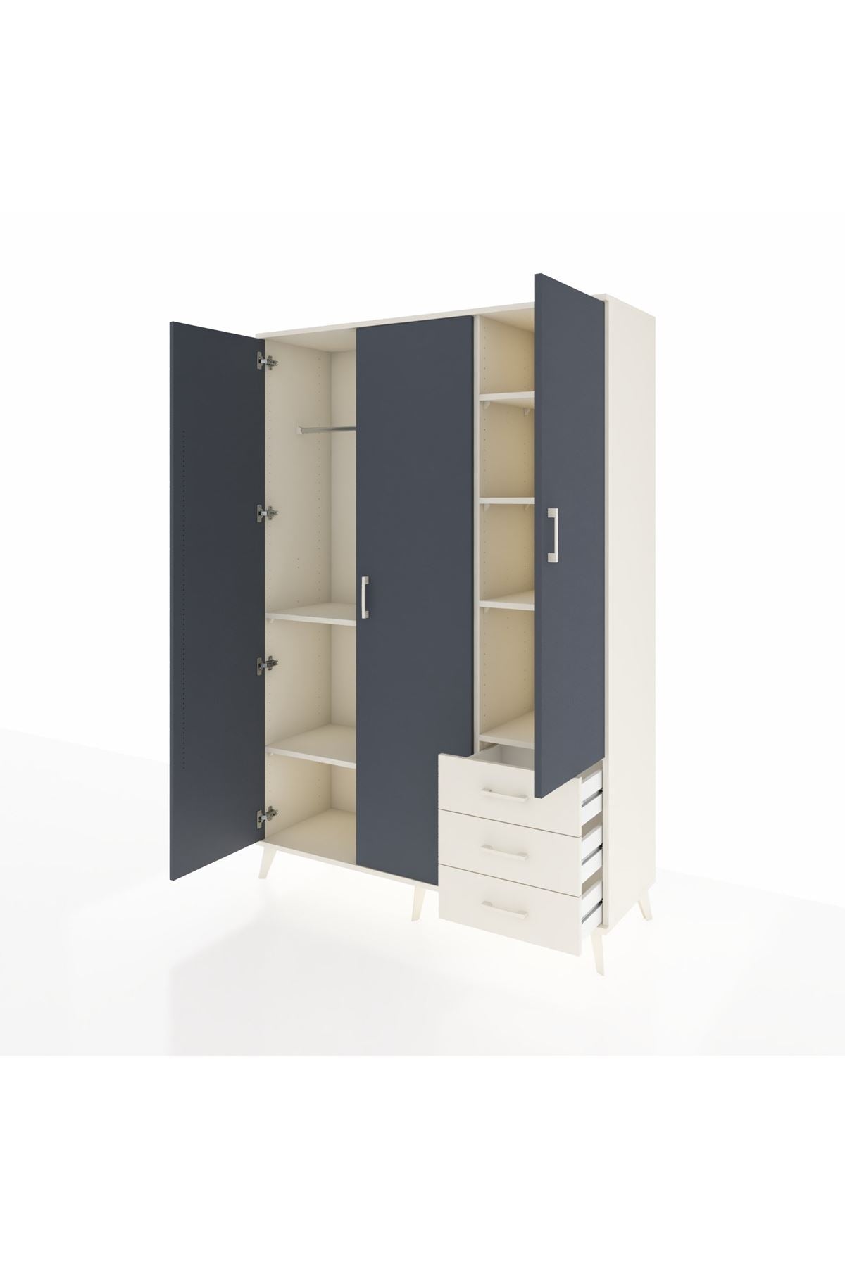 Hyperion Dolap 6 Raflı 3 Çekmeceli Tek Askılı 132x44x195 Aytaşı-Antrasit/Aytaşı