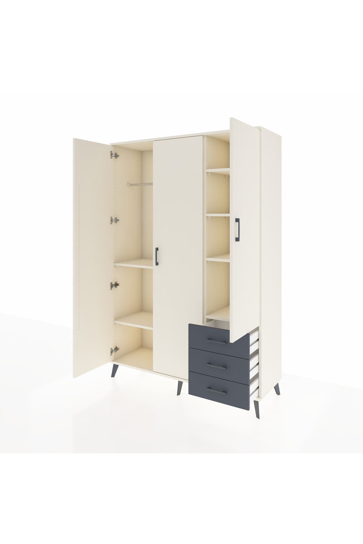 Hyperion Dolap 6 Raflı 3 Çekmeceli Tek Askılı 132x44x195 Aytaşı-Aytaşı/Antrasit