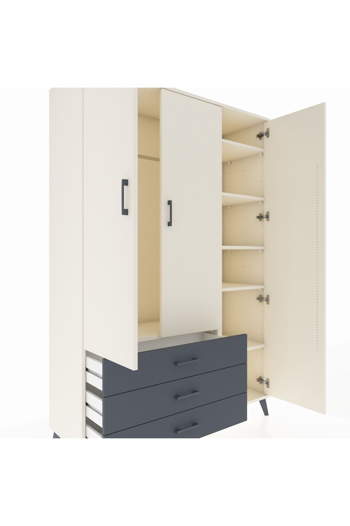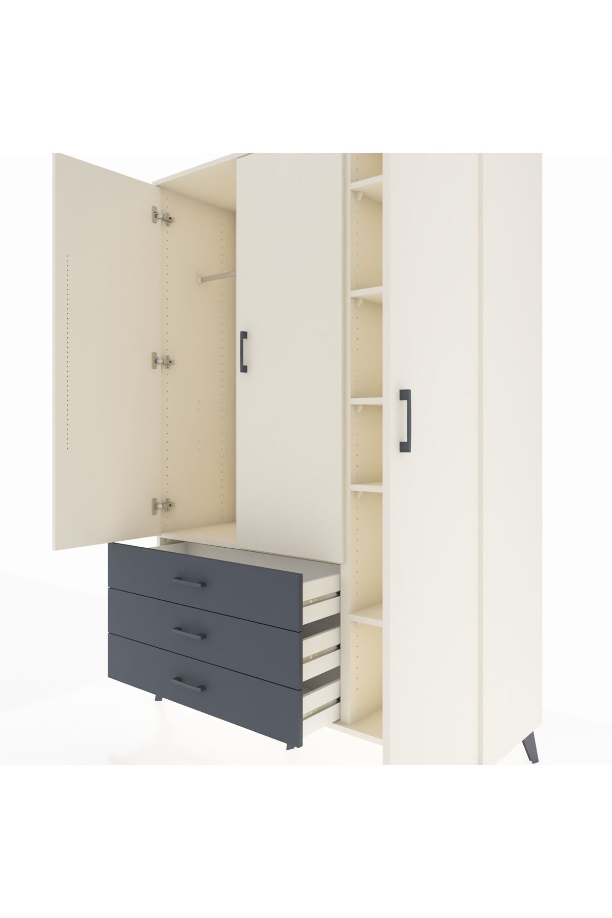 Hyperion Dolap 6 Raflı 3 Çekmeceli Tek Askılı 132x44x195 Aytaşı-Aytaşı/Antrasit