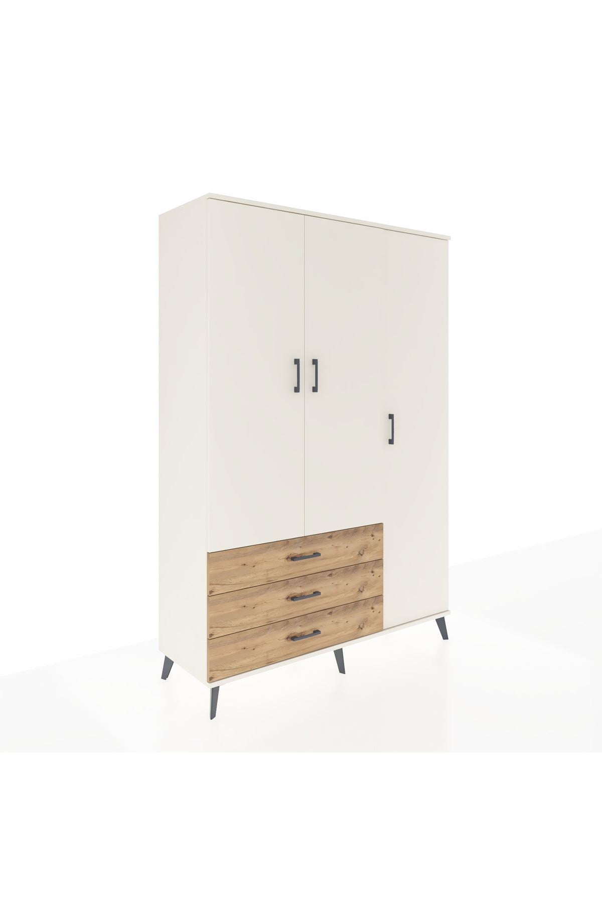 Hyperion Dolap 6 Raflı 3 Çekmeceli Tek Askılı 132x44x195 Aytaşı-Aytaşı/Çam