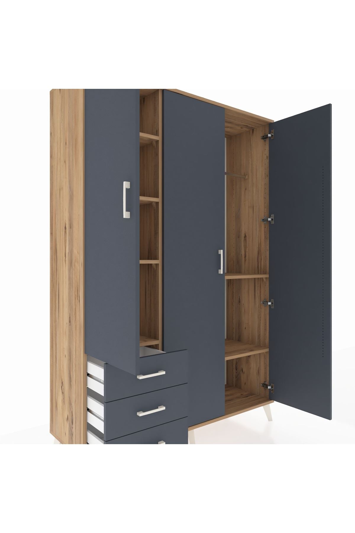 Hyperion Dolap 6 Raflı 3 Çekmeceli Tek Askılı 132x44x195 Çam-Antrasit/Antrasit