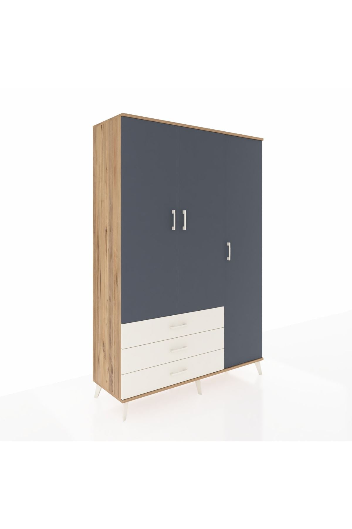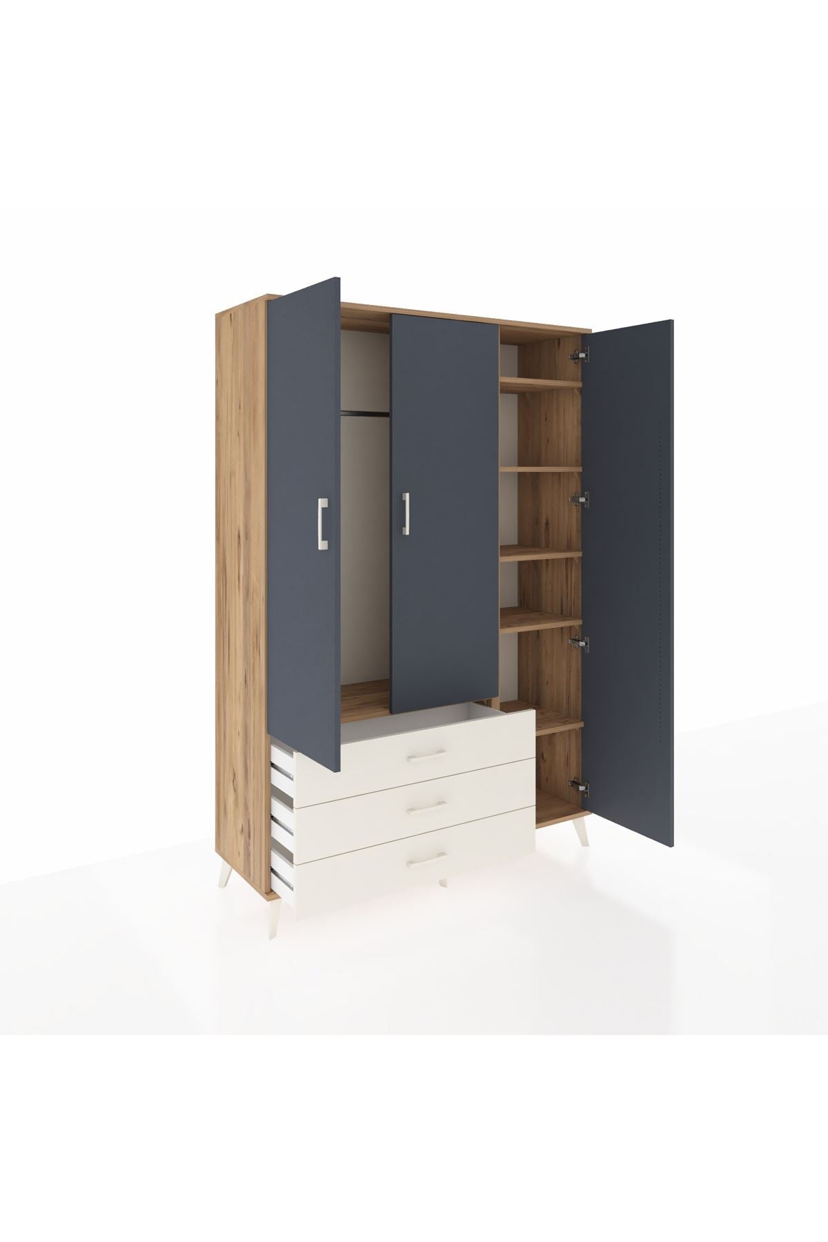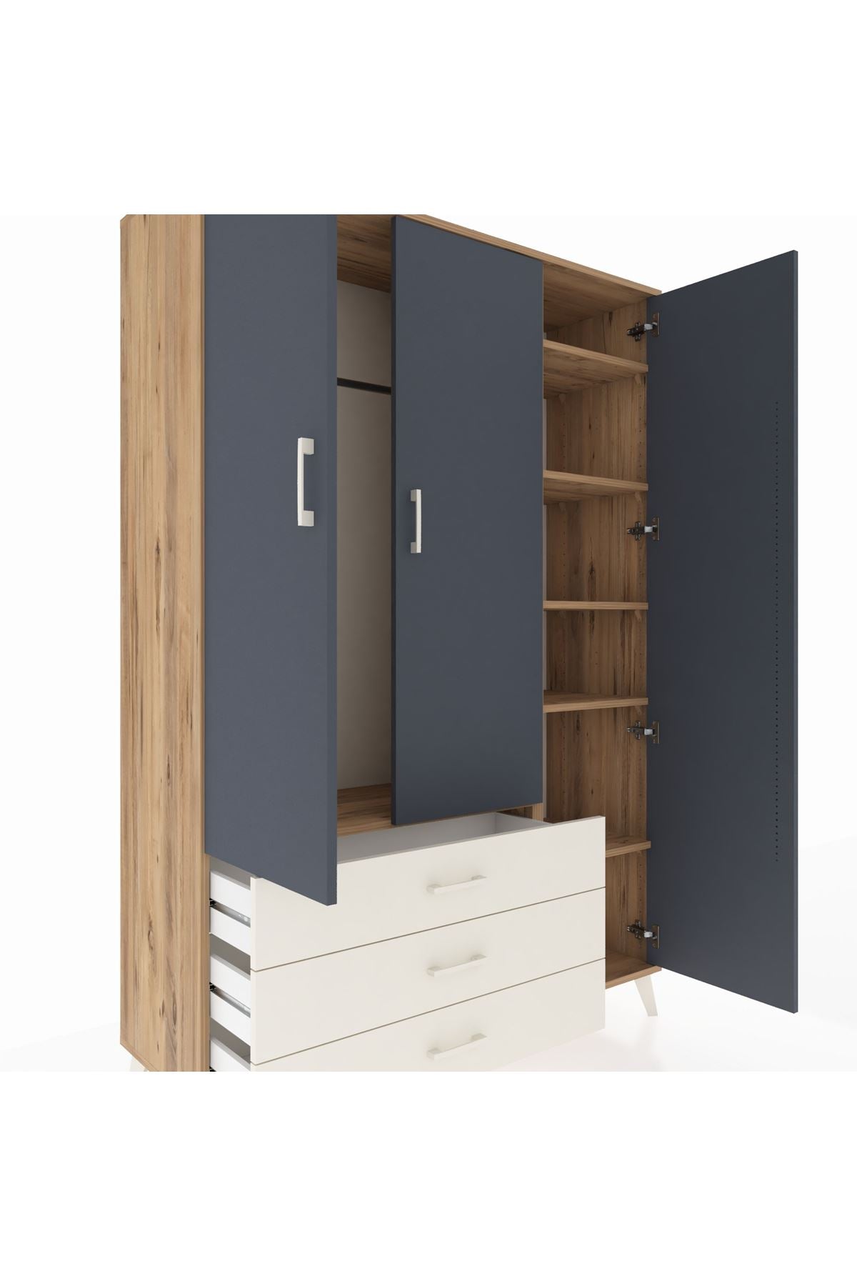 Hyperion Dolap 6 Raflı 3 Çekmeceli Tek Askılı 132x44x195 Çam-Antrasit/Aytaşı