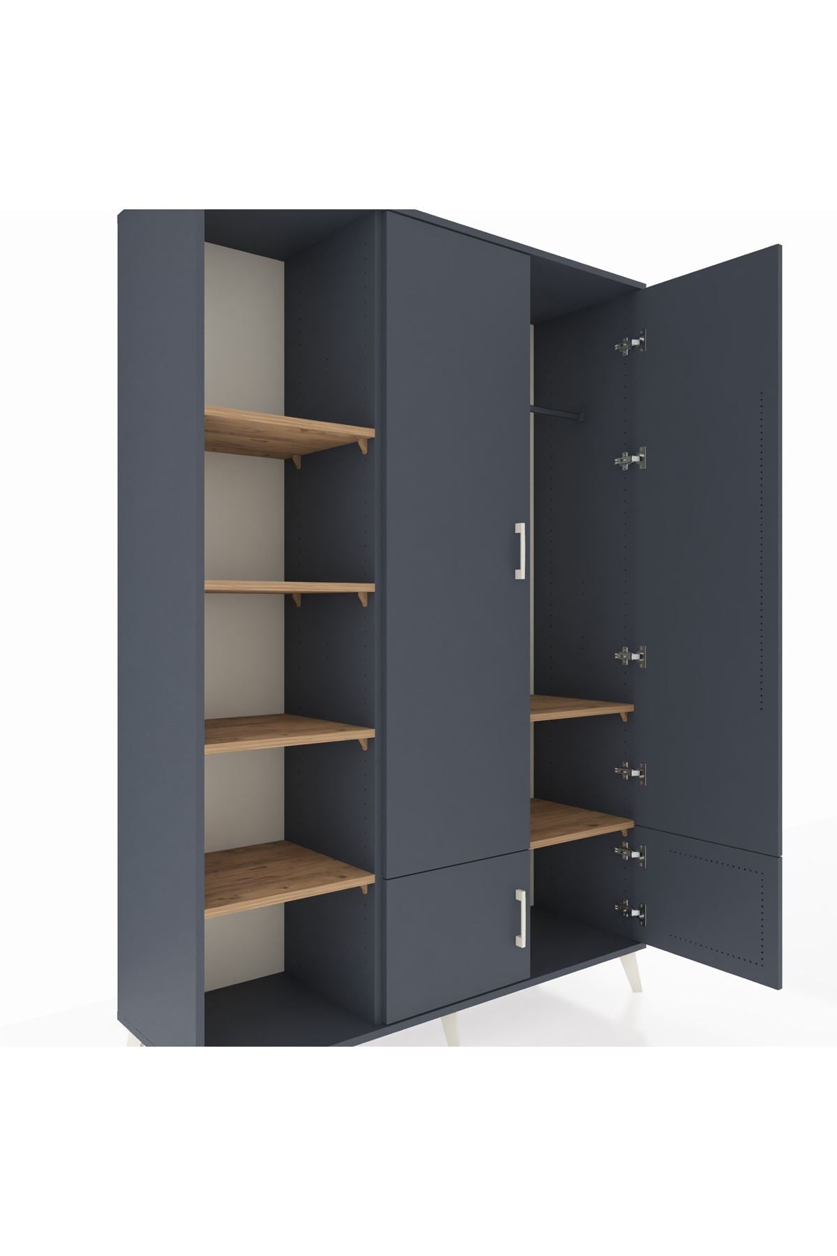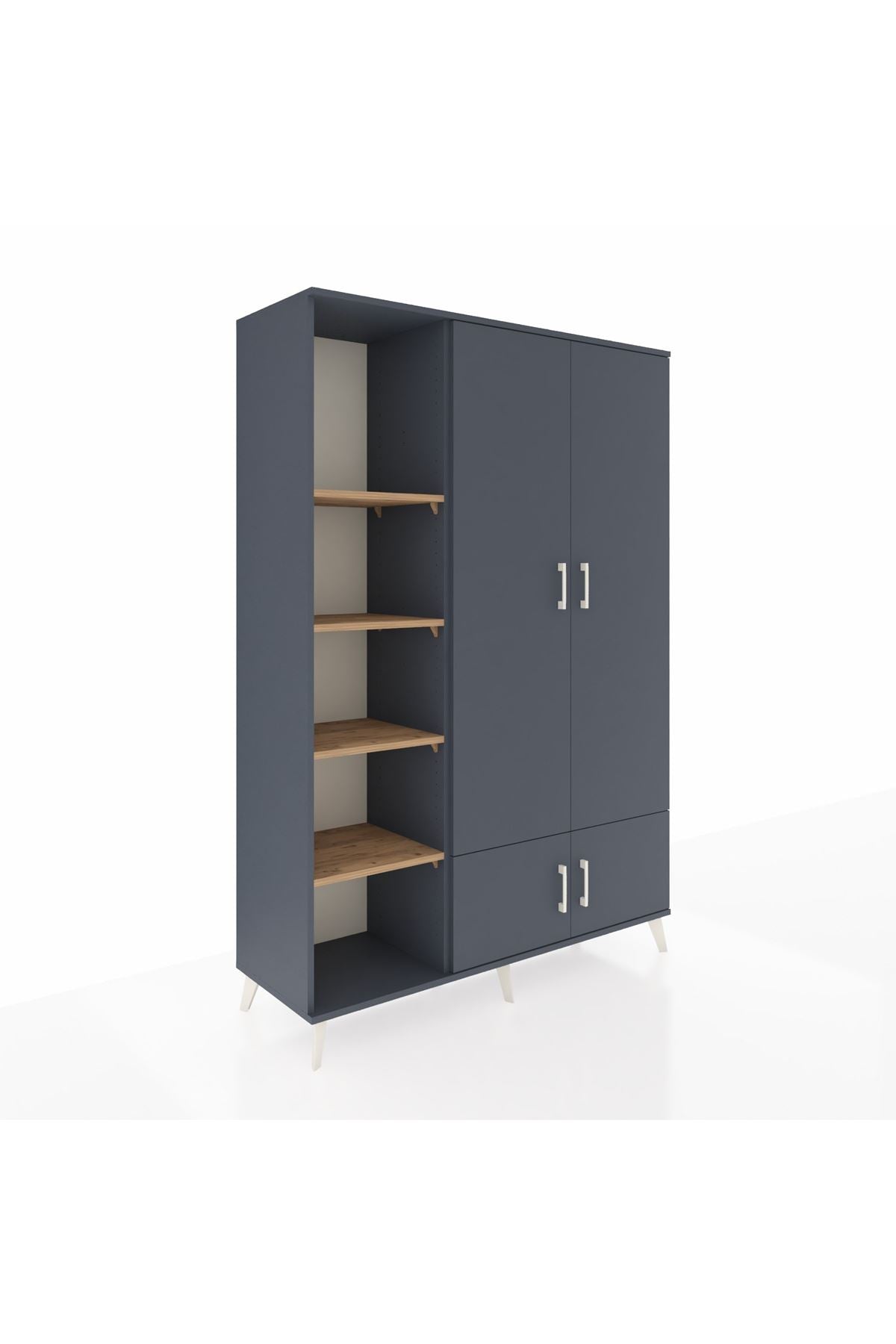 Hyperion Dolap 6 Raflı 4 Kapaklı Tek Askılı 132x44x195 Antrasit-Antrasit/Çam