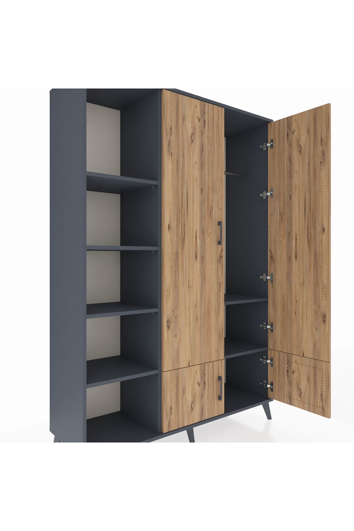 Hyperion Dolap 6 Raflı 4 Kapaklı Tek Askılı 132x44x195 Antrasit-Çam/Antrasit