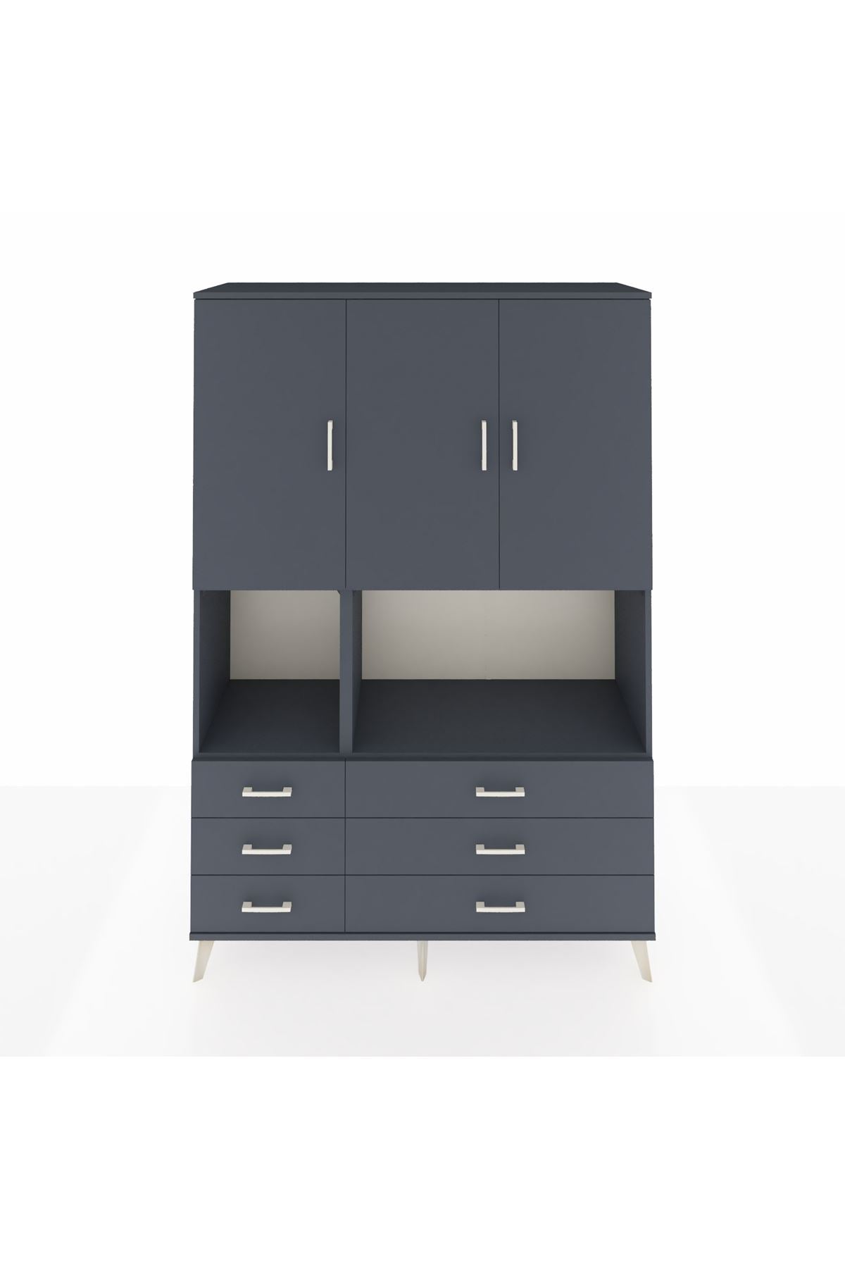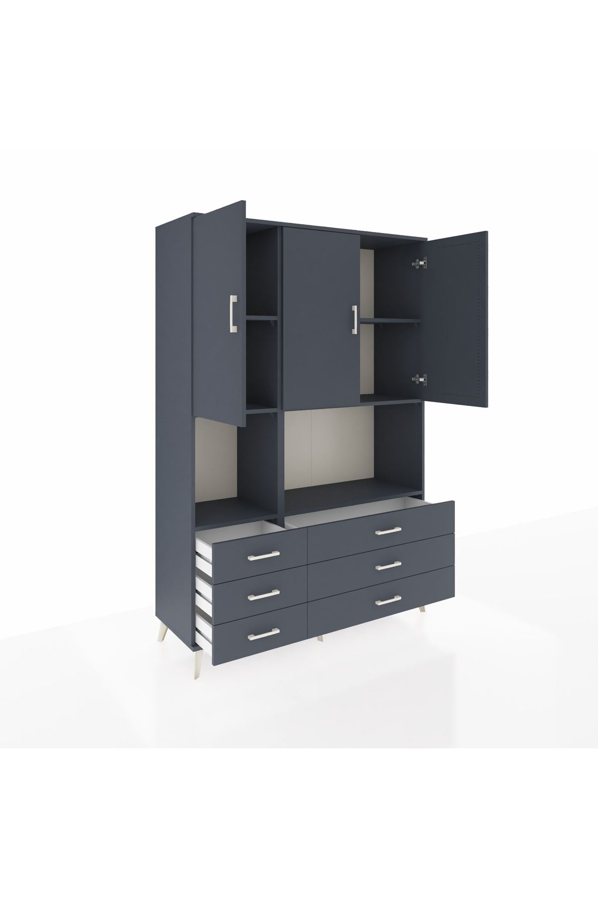 Hyperion Dolap 6 Raflı 6 Çekmeceli 3 Kapaklı 132x44x195 Antrasit-Antrasit/Antrasit