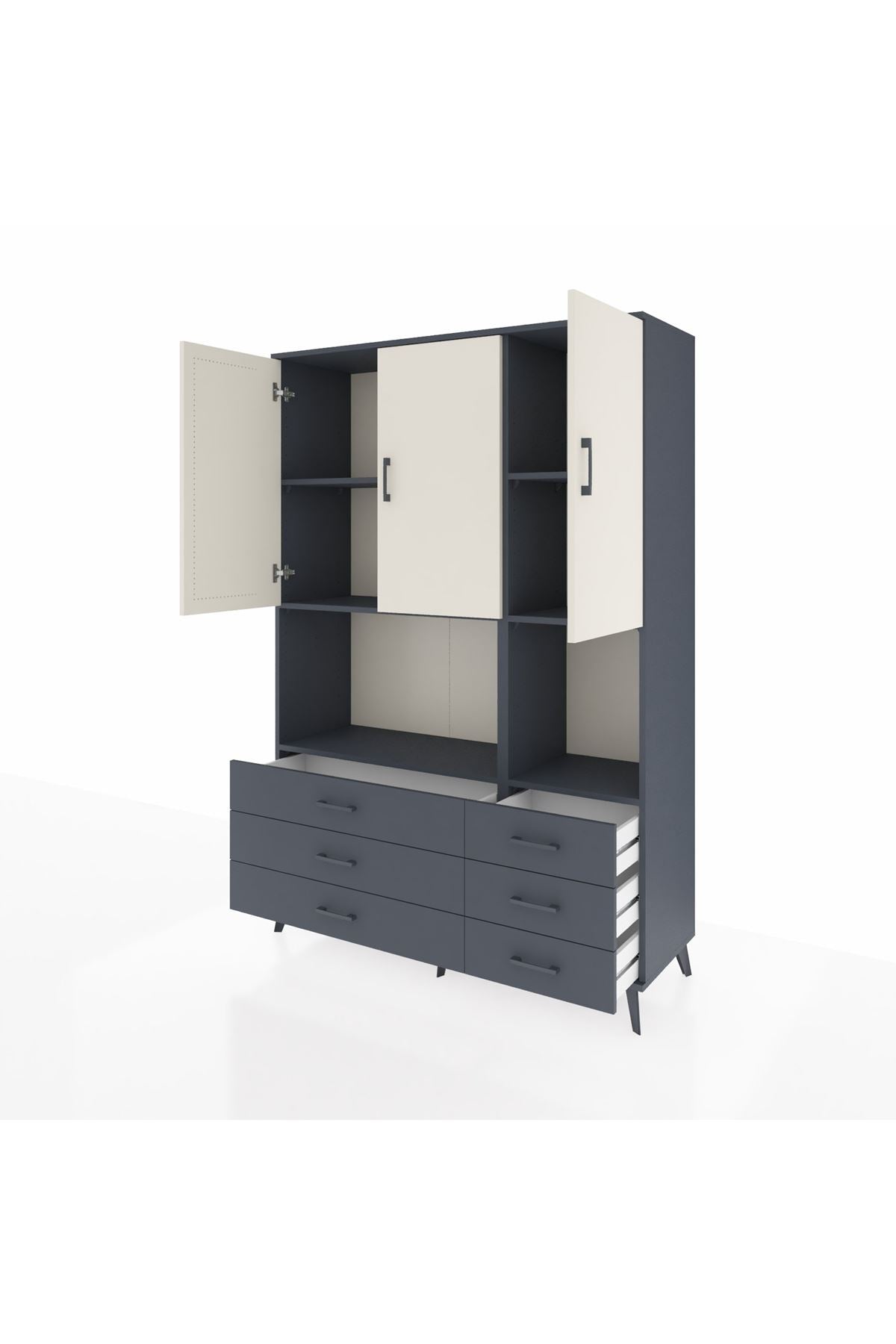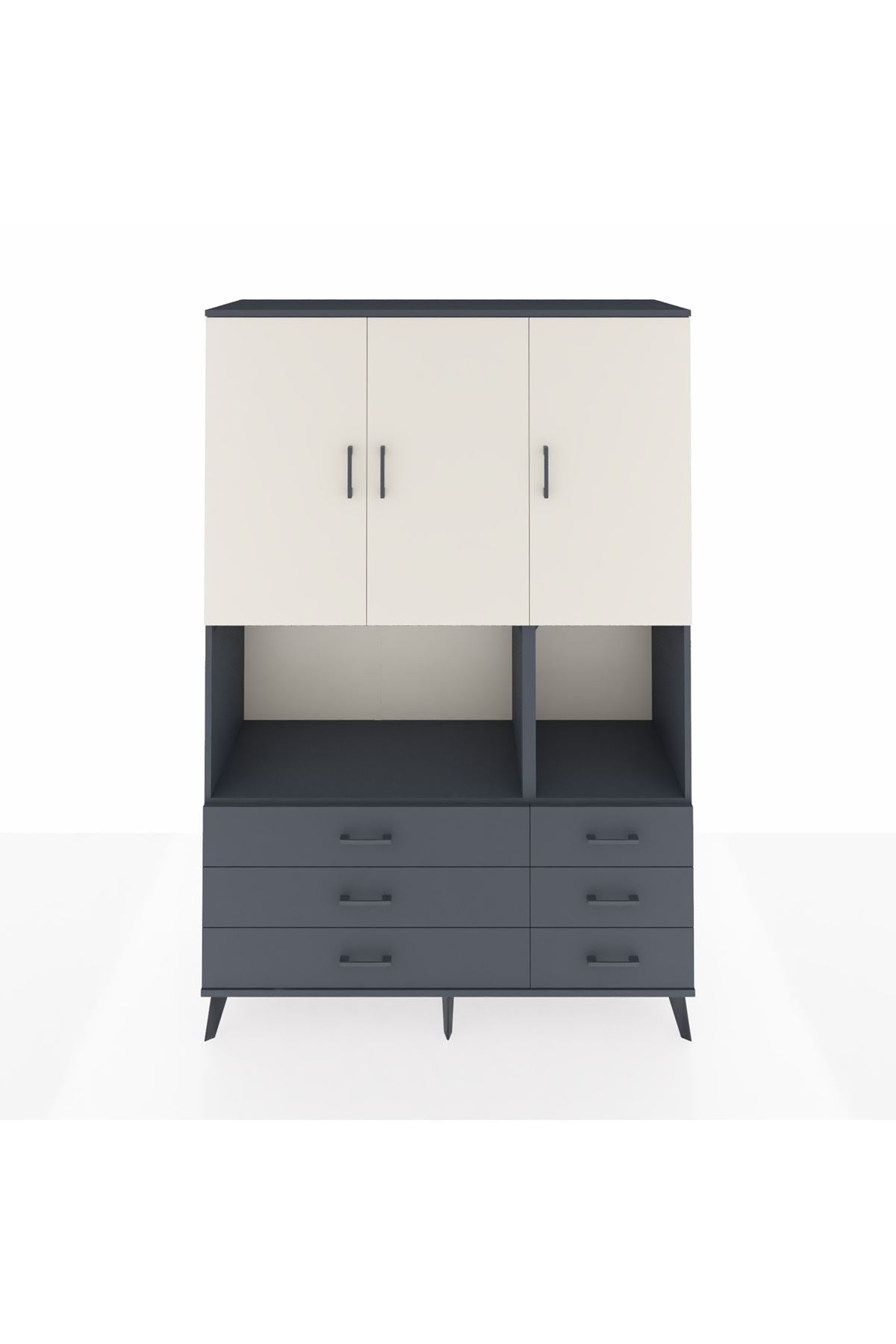 Hyperion Dolap 6 Raflı 6 Çekmeceli 3 Kapaklı 132x44x195 Antrasit-Aytaşı/Antrasit
