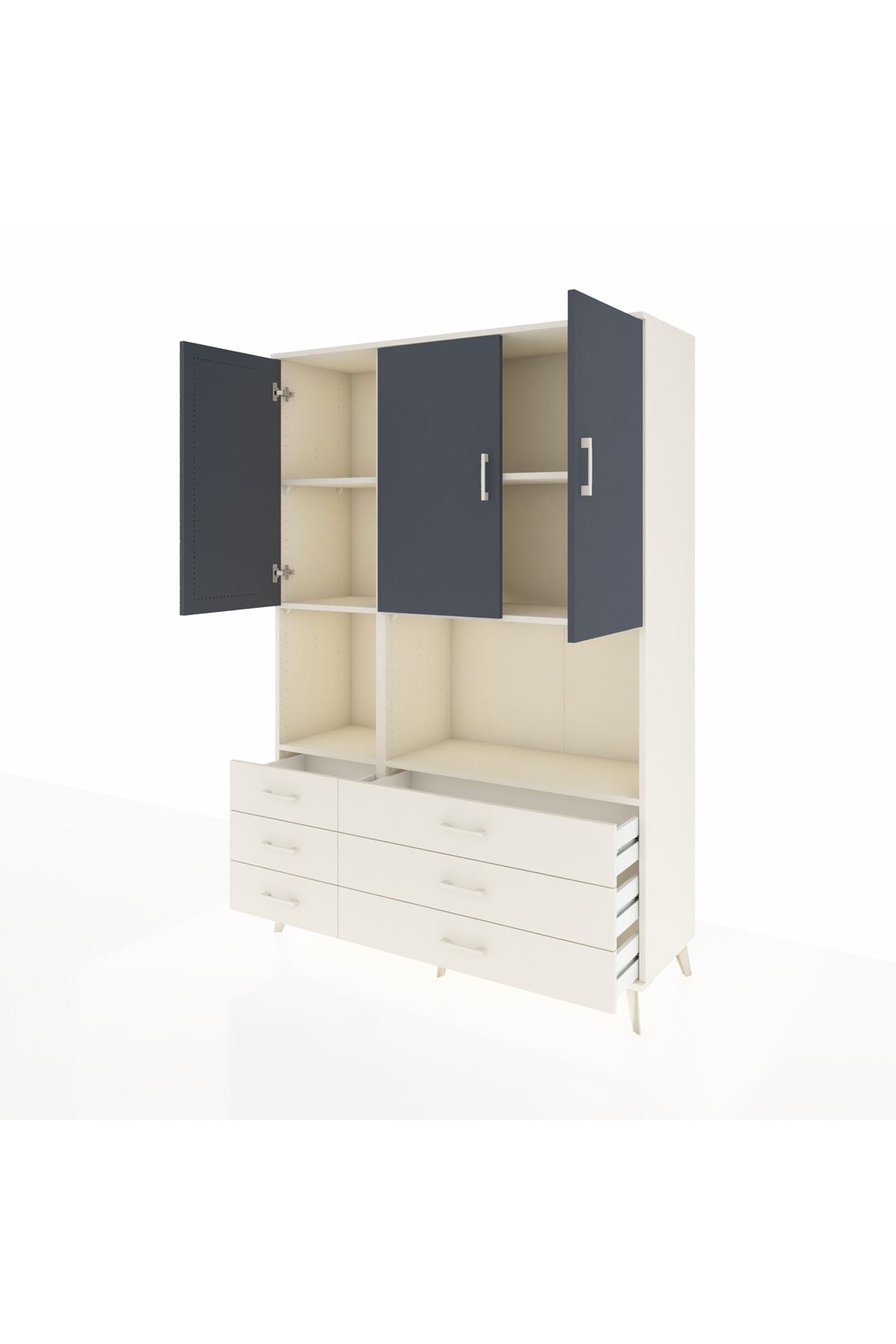 Hyperion Dolap 6 Raflı 6 Çekmeceli 3 Kapaklı 132x44x195 Aytaşı-Antrasit/Aytaşı