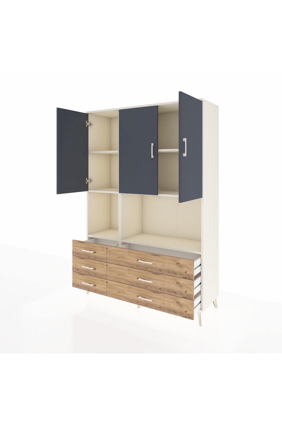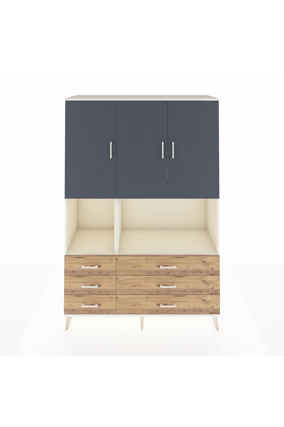 Hyperion Dolap 6 Raflı 6 Çekmeceli 3 Kapaklı 132x44x195 Aytaşı-Antrasit/Çam