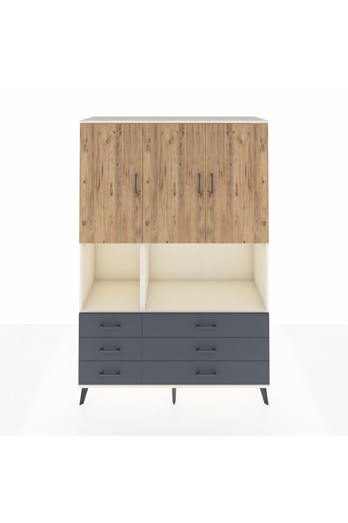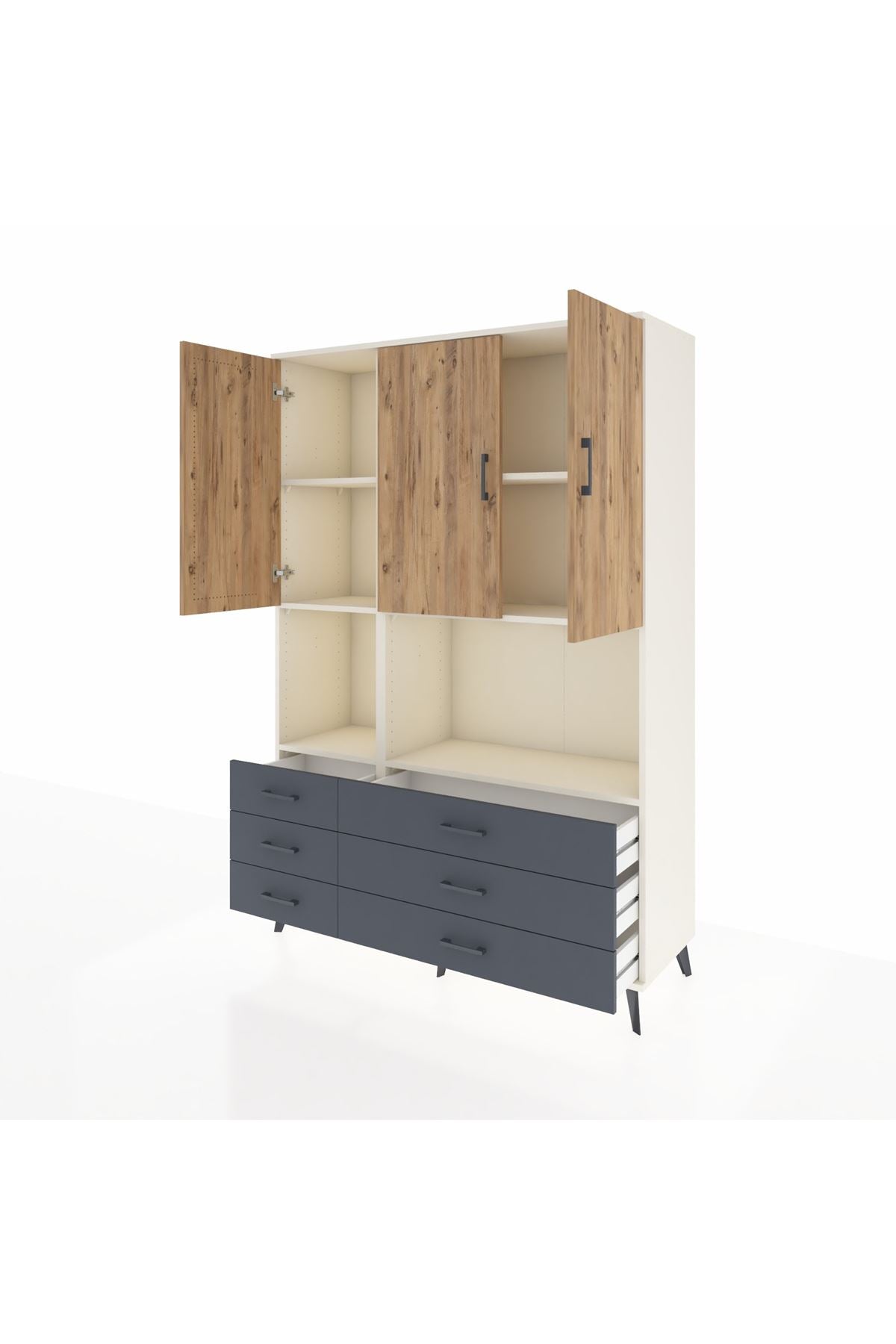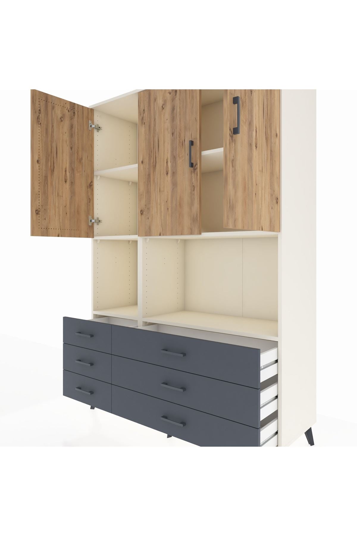 Hyperion Dolap 6 Raflı 6 Çekmeceli 3 Kapaklı 132x44x195 Aytaşı-Çam/Antrasit