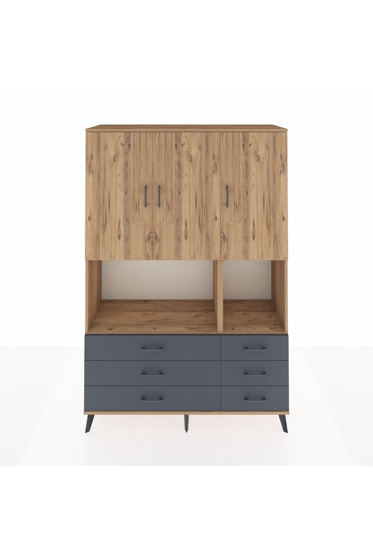 Hyperion Dolap 6 Raflı 6 Çekmeceli 3 Kapaklı 132x44x195 Çam-Çam/Antrasit