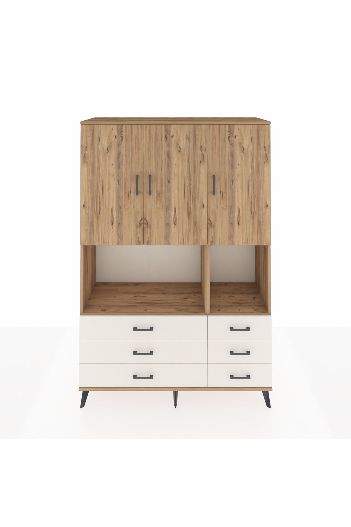 Hyperion Dolap 6 Raflı 6 Çekmeceli 3 Kapaklı 132x44x195 Çam-Çam/Aytaşı