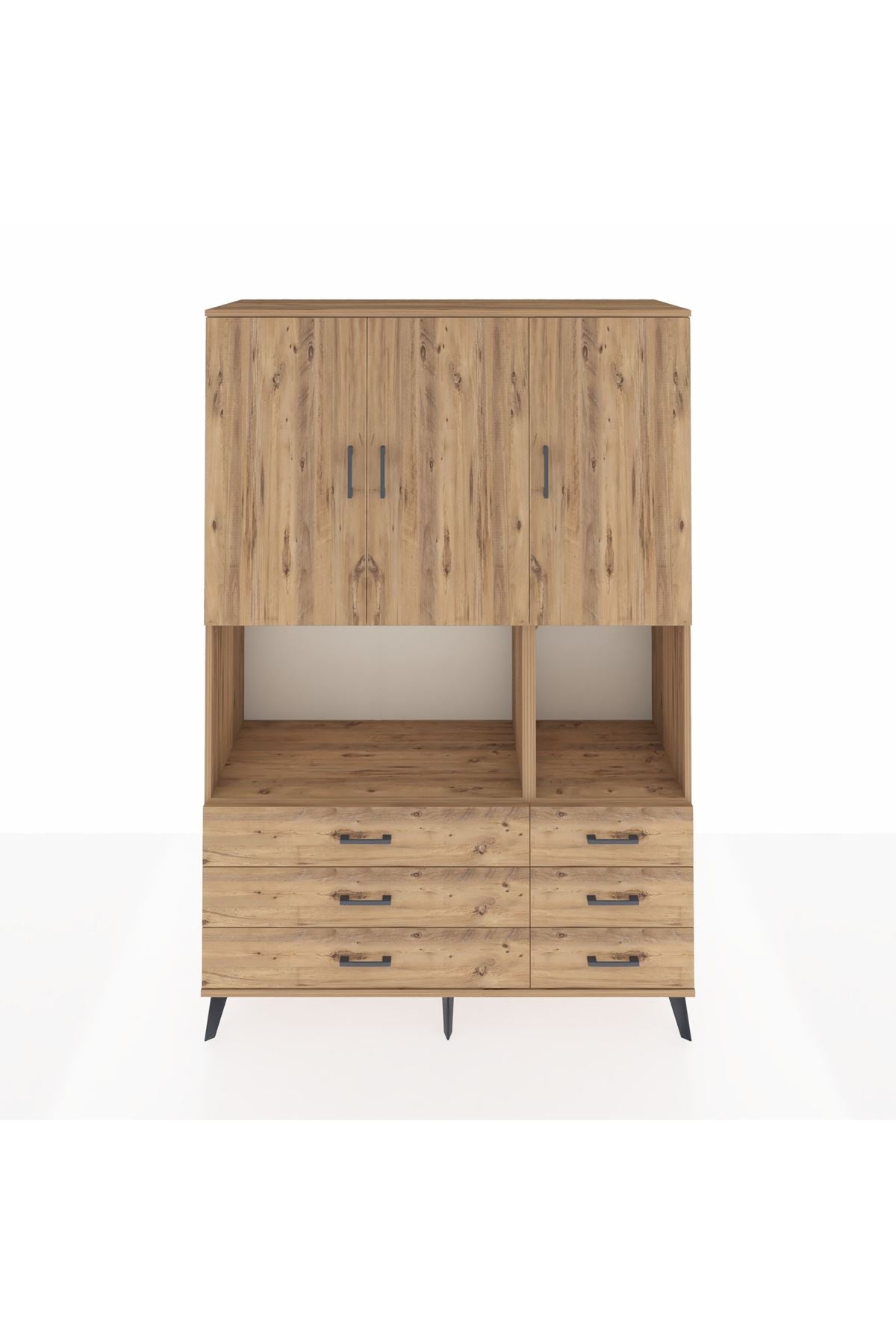 Hyperion Dolap 6 Raflı 6 Çekmeceli 3 Kapaklı 132x44x195 Çam-Çam/Çam
