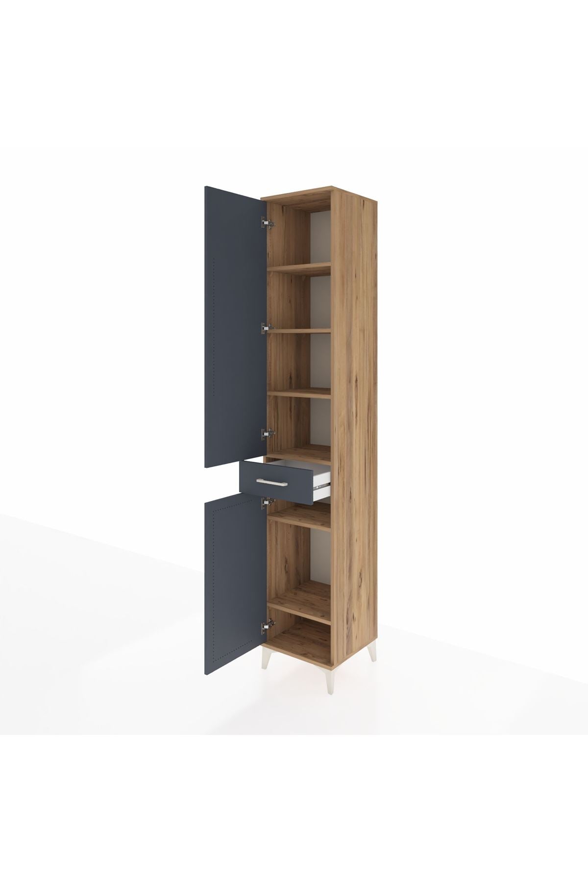 Hyperion Dolap 6 Raflı Tek Çekmeceli 2 Kapaklı 44x44x243 Çam-Antrasit
