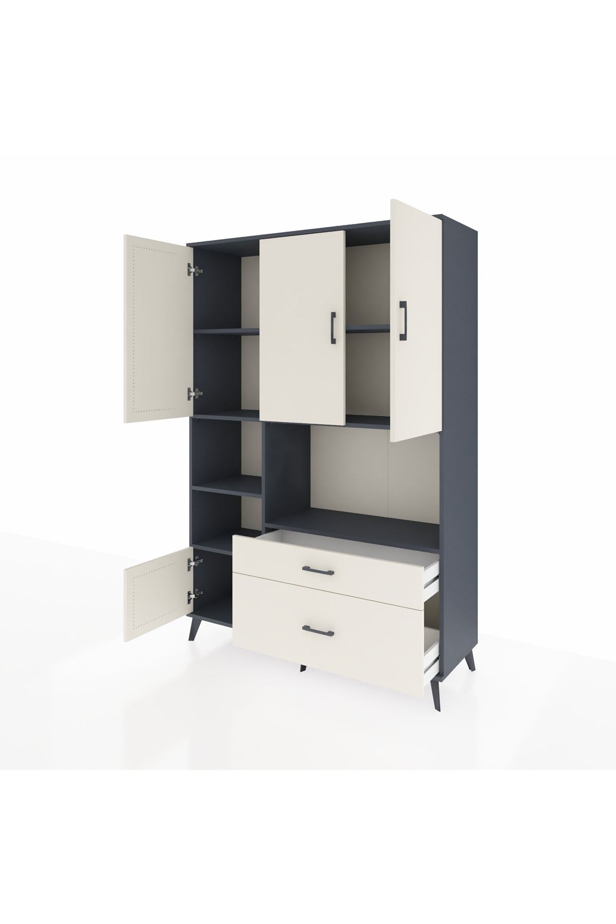Hyperion Dolap 7 Raflı 2 Çekmeceli 5 Kapaklı 132x44x195 Antrasit-Aytaşı/Aytaşı