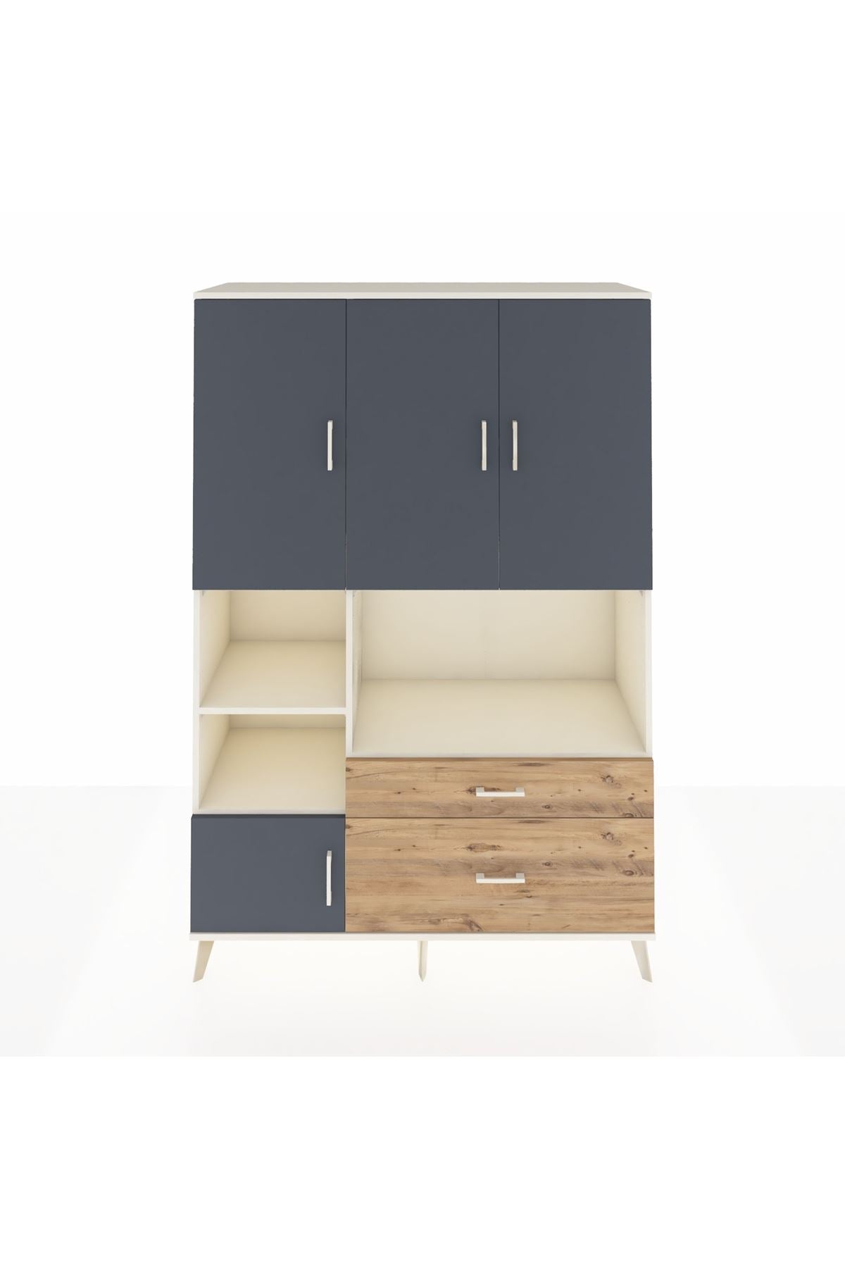 Hyperion Dolap 7 Raflı 2 Çekmeceli 5 Kapaklı 132x44x195 Aytaşı-Antrasit/Çam