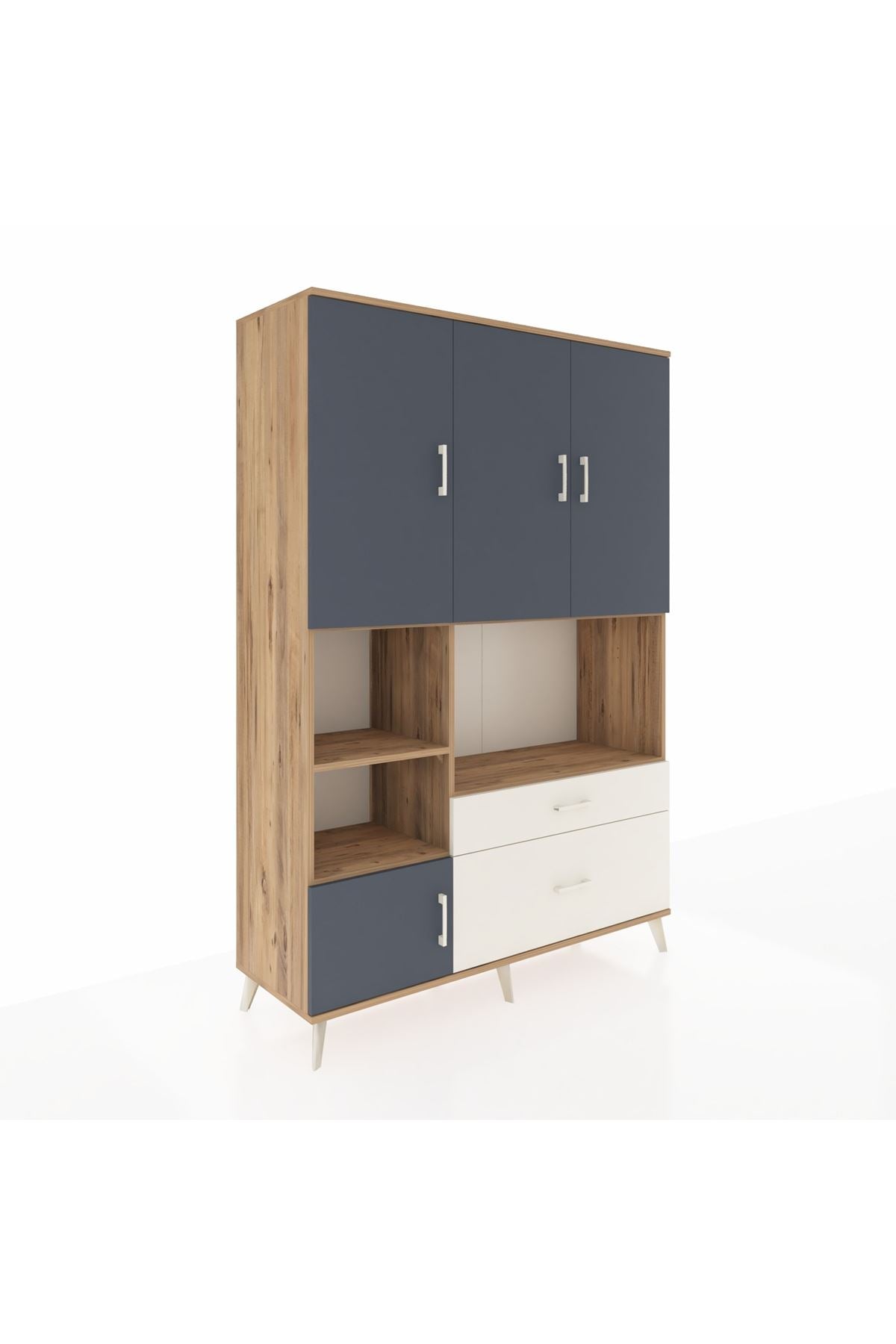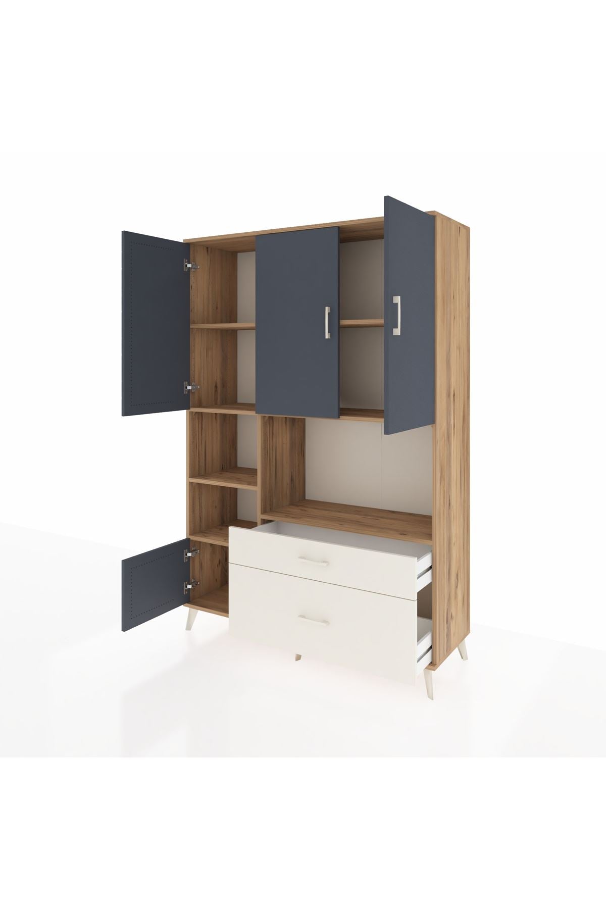 Hyperion Dolap 7 Raflı 2 Çekmeceli 5 Kapaklı 132x44x195 Çam-Antrasit/Aytaşı