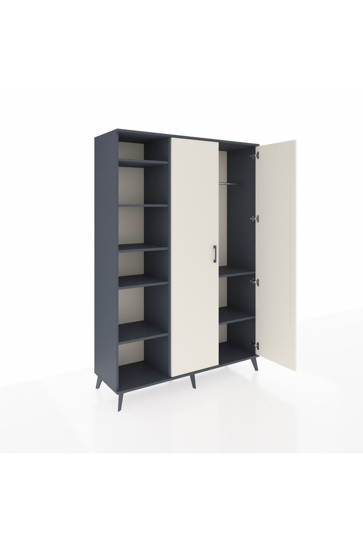 Yüksek kapasiteli raf düzeni sayesinde kıyafet, çanta, ayakkabı ve aksesuarları kategorize ederek saklayabilirsiniz. Kapaklı bölme tozdan koruma sağlarken açık raflar sık kullanılan eşyaları hızlı erişime hazır tutar. Metal ayaklı tasarım zemin temizliğini kolaylaştırır ve dolaba modern bir duruş kazandırır. Kompakt derinlik (44 cm) koridor, antre veya küçük odalarda yer kazanımı sağlar. Dayanıklı suntalam yüzeyi günlük kullanımda çizilmelere ve lekelere karşı direnç gösterir.