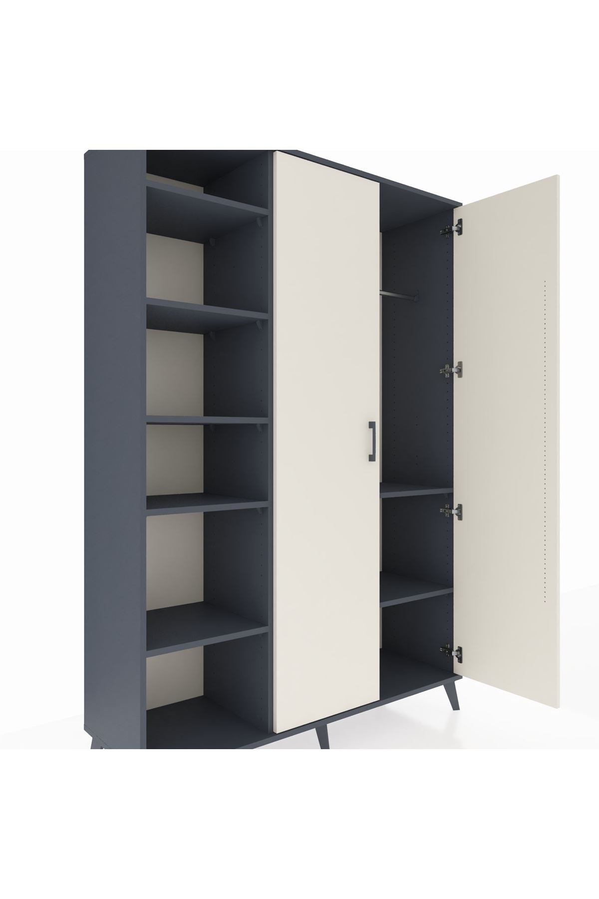 Geniş askılık ve ayarlanabilir raflar sayesinde günlük kıyafetler, pijama takımları ve yatak takımları için ideal depolama alanı sunar. Kapaklı bölüm içindeki tek askı sayesinde elbise ve ceketler kırışmadan saklanır; üst raflar mevsimlik tekstil ürünleri için kullanışlıdır.