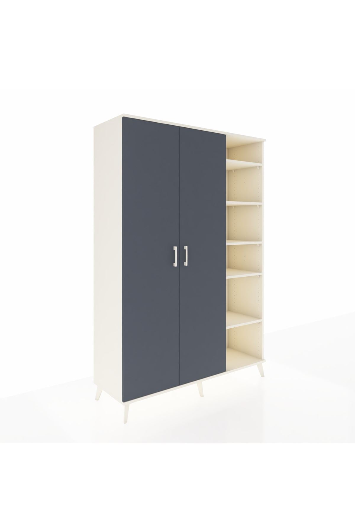 Hyperion Dolap 7 Raflı 2 Kapaklı Tek Askılı 132x44x195 Aytaşı-Antrasit/Aytaşı