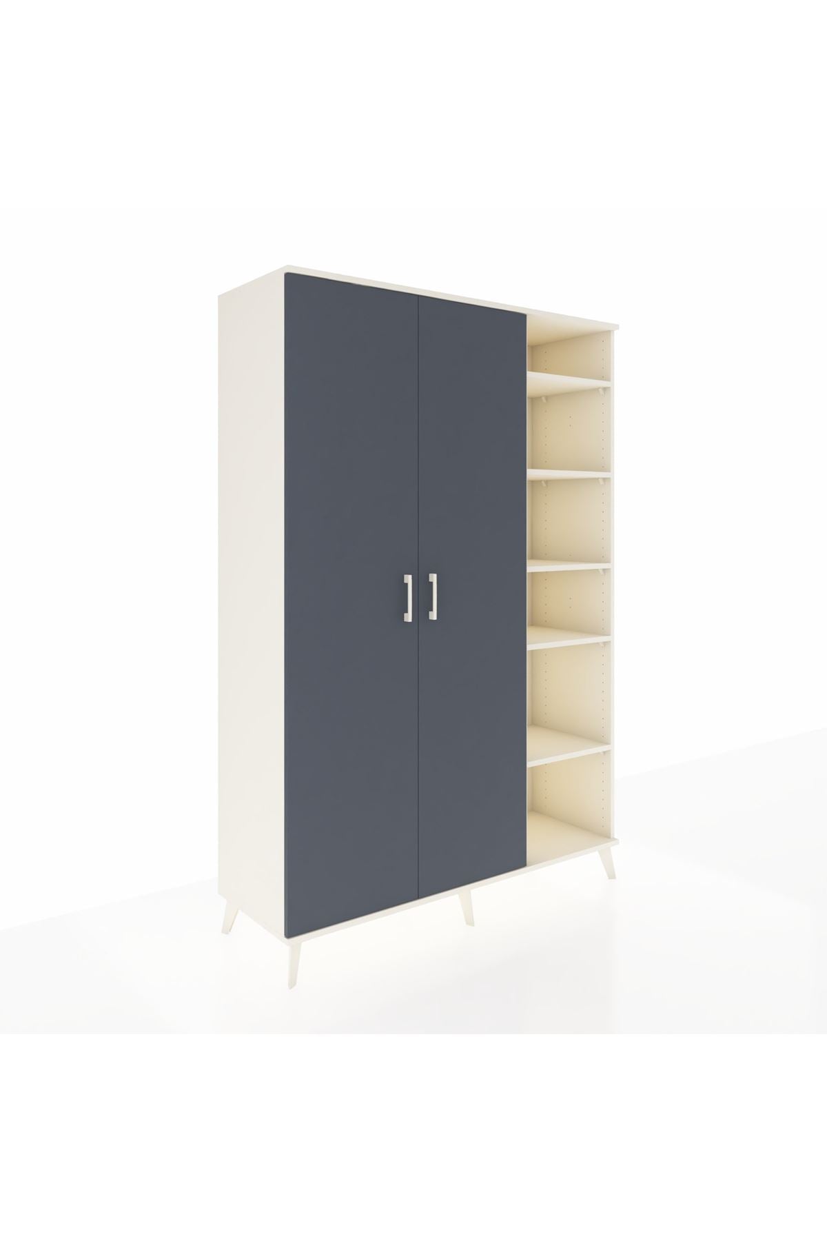 Hyperion Dolap 7 Raflı 2 Kapaklı Tek Askılı 132x44x195 Aytaşı-Antrasit/Çam