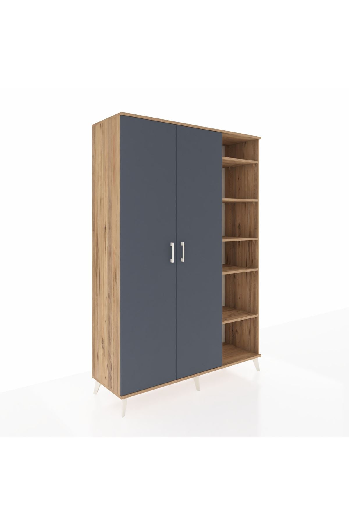 Hyperion Dolap 7 Raflı 2 Kapaklı Tek Askılı 132x44x195 Çam-Antrasit/Antrasit