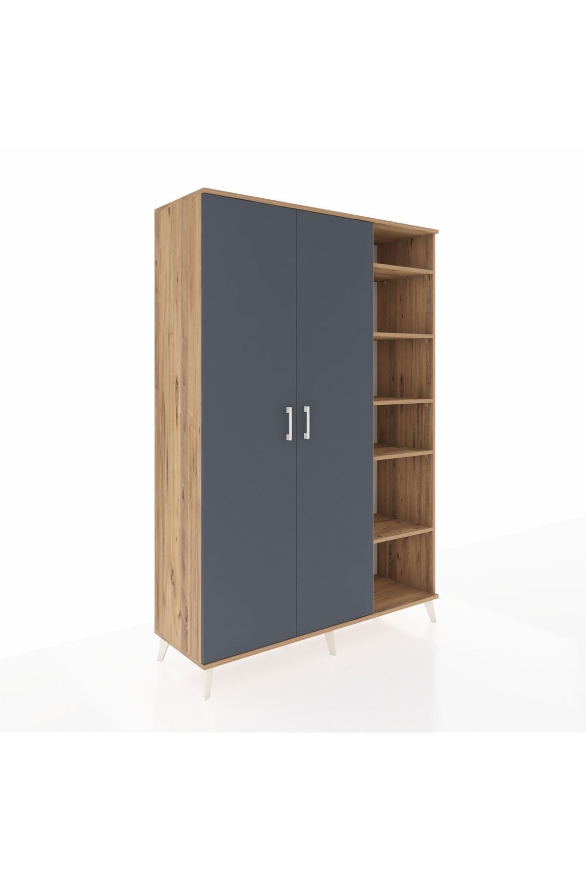Hyperion Dolap 7 Raflı 2 Kapaklı Tek Askılı 132x44x195 Çam-Antrasit/Çam