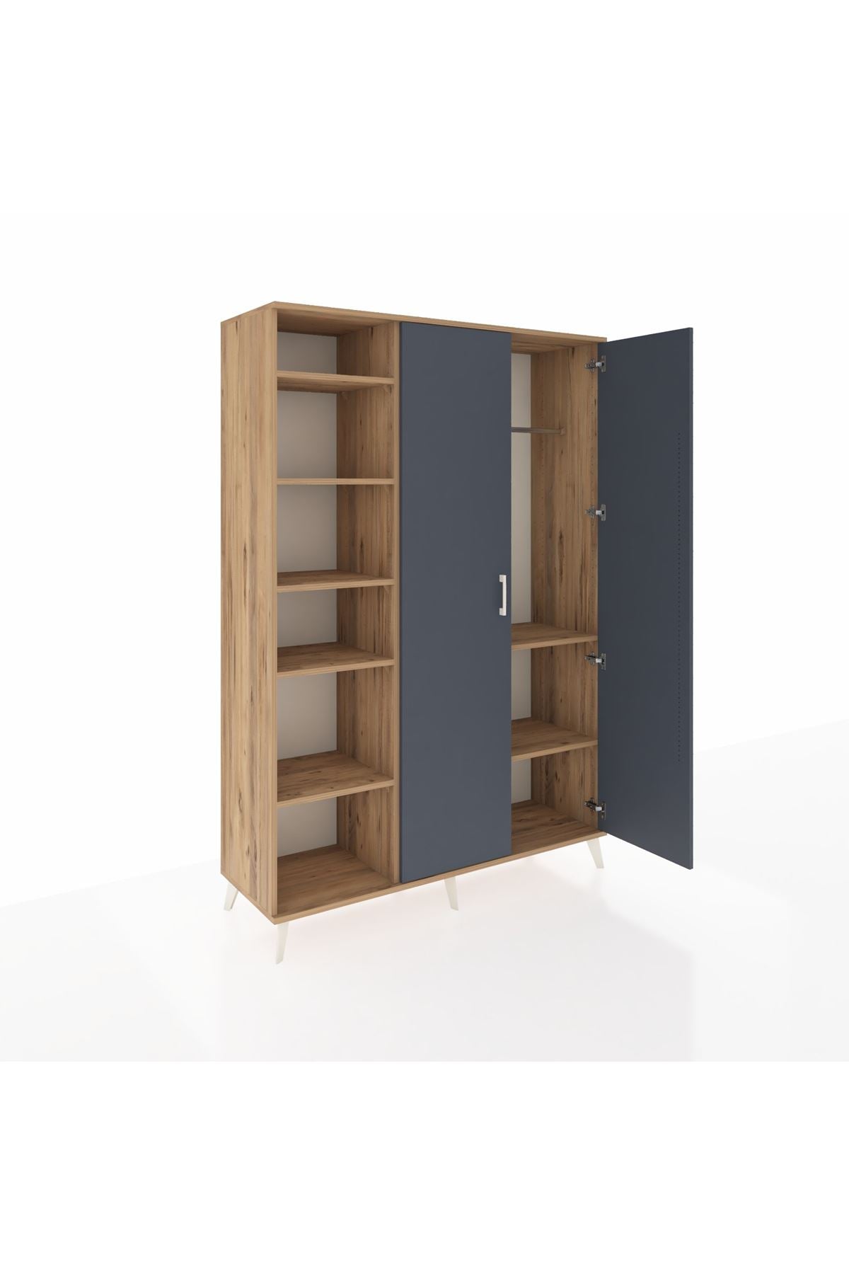 Bu dolap, evinizde düzen ve kullanım kolaylığı sağlar. Antrasit kapaklarla zenginleşen çam gövde kombinasyonu modern ve sıcak bir denge sunar. Metal ayaklar zemine sağlam oturur, darbelere ve uzun süreli kullanıma karşı yüksek dayanım gösterir. Metal kulplar estetik görünümün yanı sıra uzun ömürlü, güvenilir açma-kapama deneyimi sağlar. İç kısımda 7 adet raf, tek askılı bölüm ve kapaklı depolama alanı ile çok yönlü yerleşim imkanı sunar; raf yüksekliği ihtiyaçlara göre ayarlanabilir, çekmece ihtiyacı olan kullanıcılar için çekmece sayısı konfigüre edilebilir.