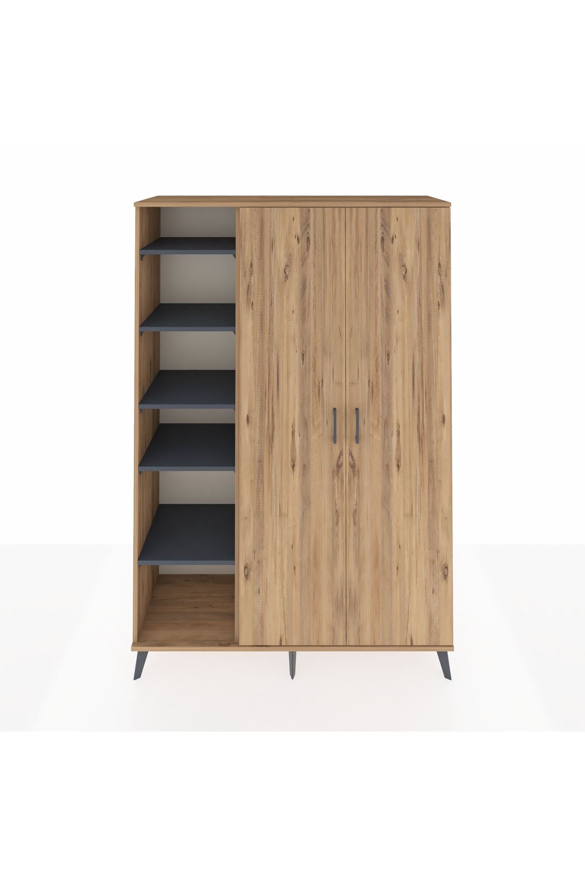 Hyperion Dolap 7 Raflı 2 Kapaklı Tek Askılı 132x44x195 Çam-Çam/Antrasit