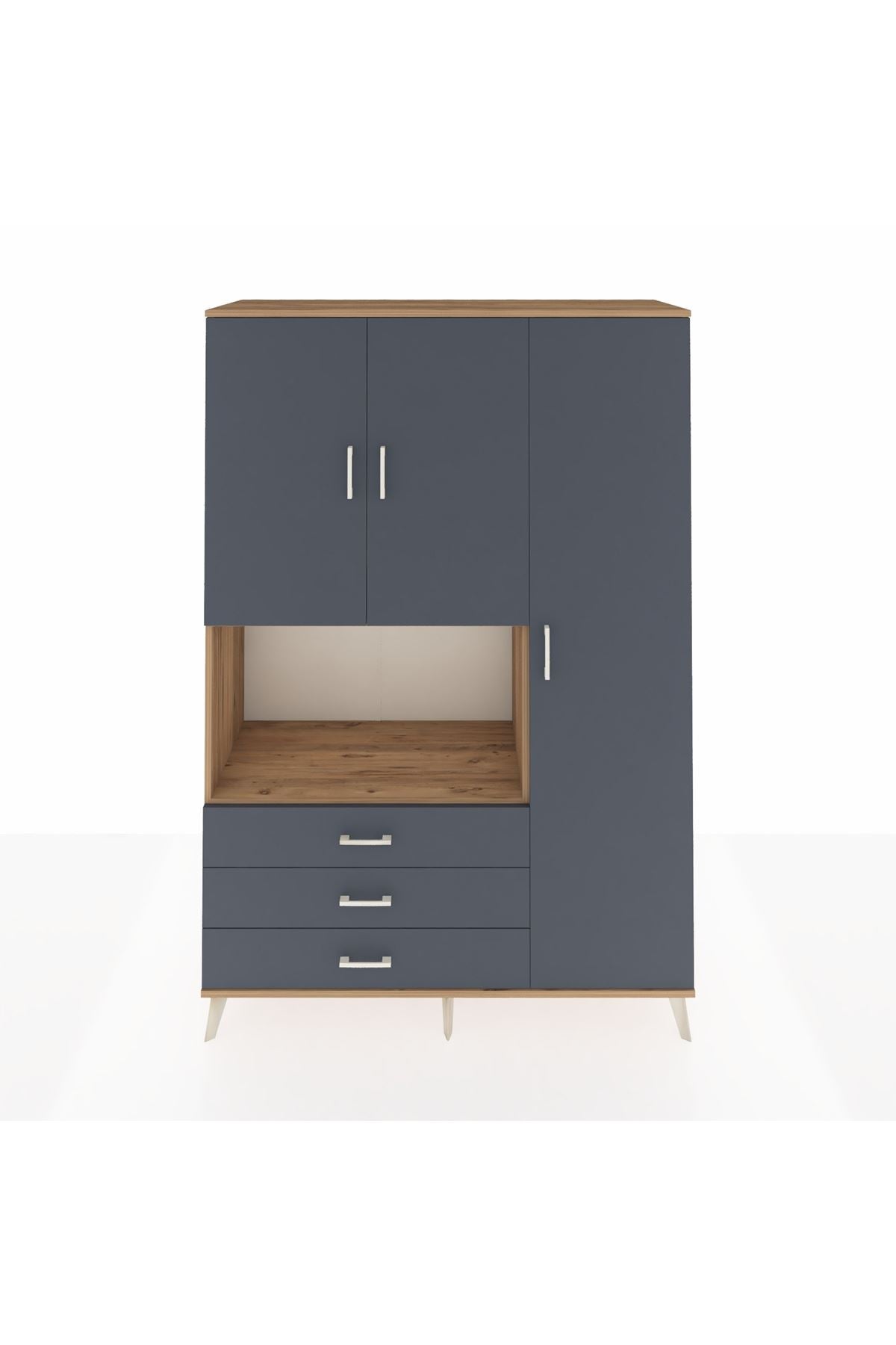 Hyperion Dolap 7 Raflı 3 Çekmeceli 3 Kapaklı 132x44x195 Çam-Antrasit/Antrasit