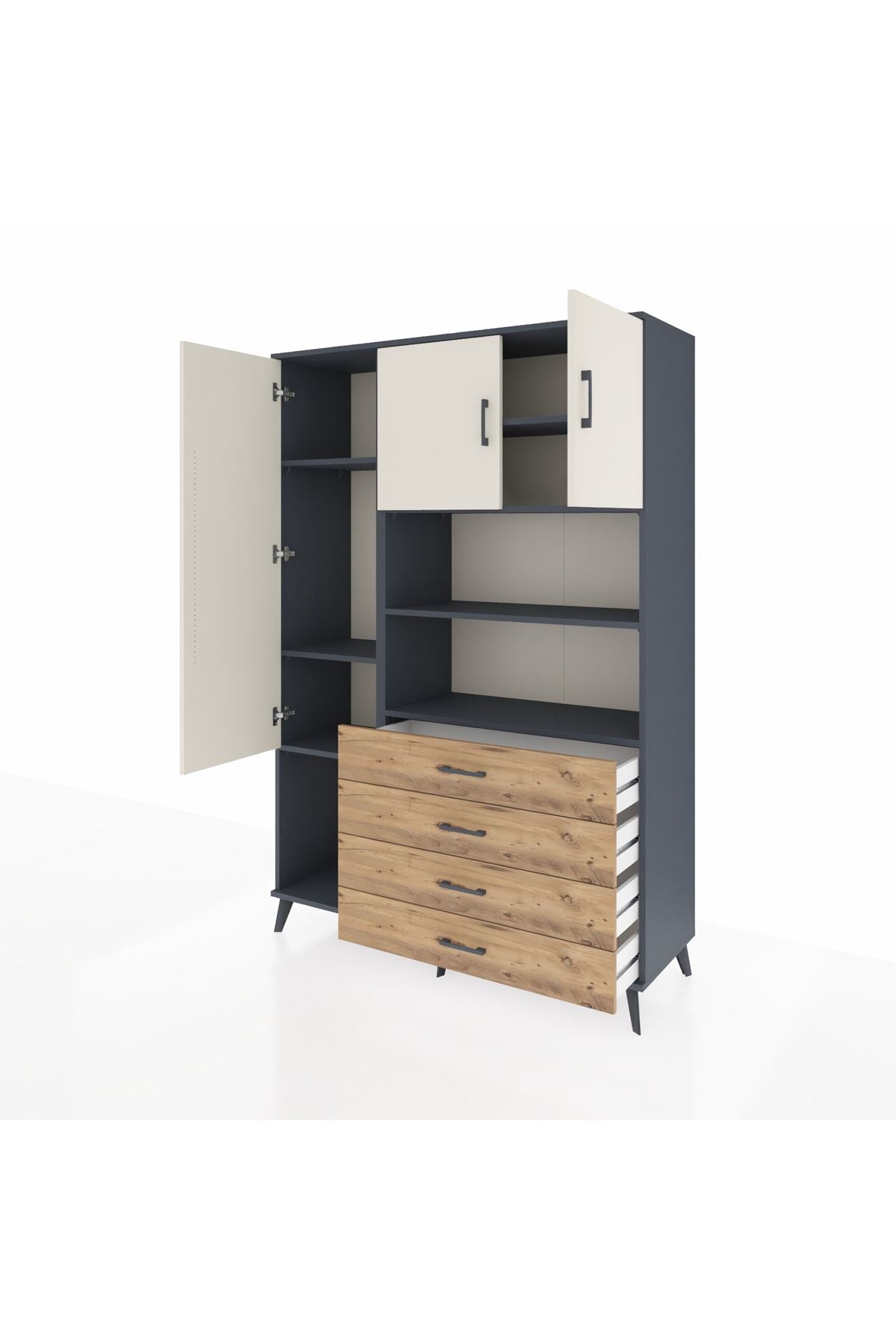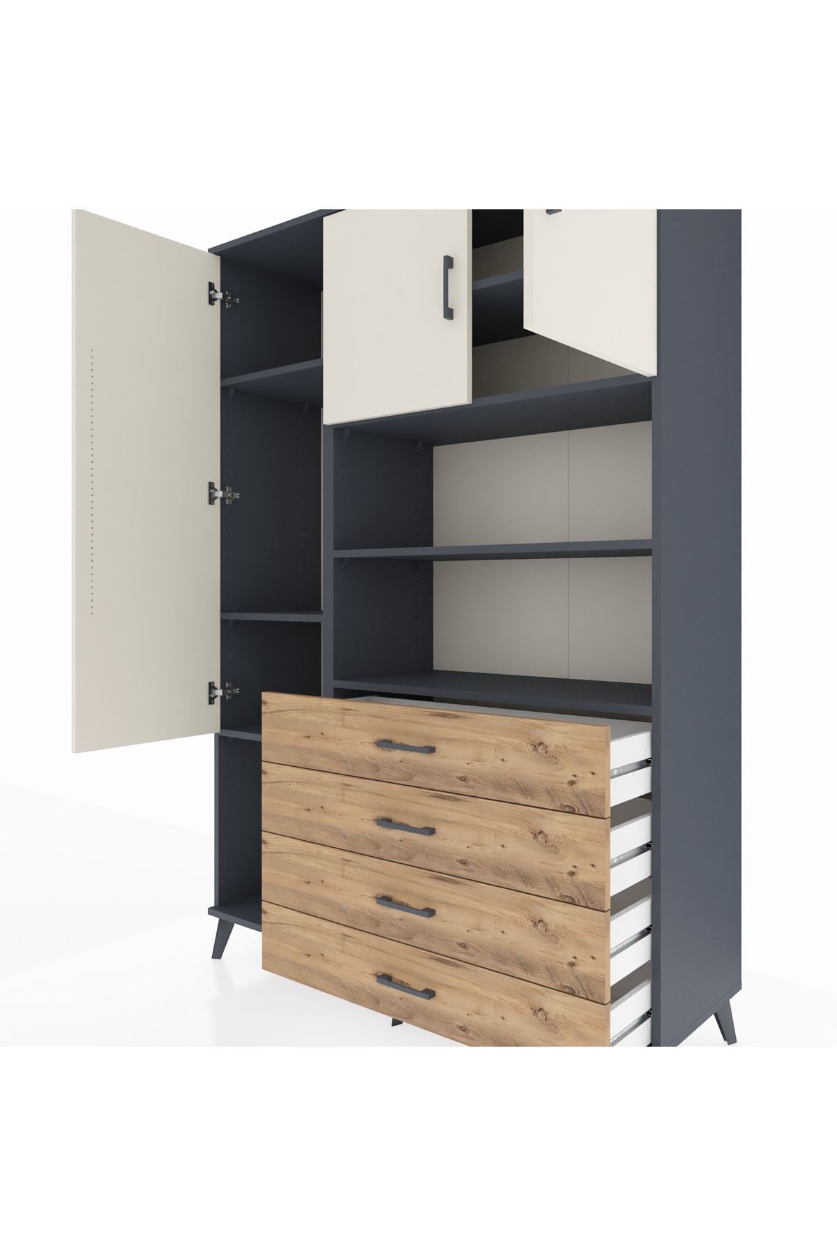 Hyperion Dolap 7 Raflı 4 Çekmeceli 3 Kapaklı 132x44x195 Antrasit-Aytaşı/Çam
