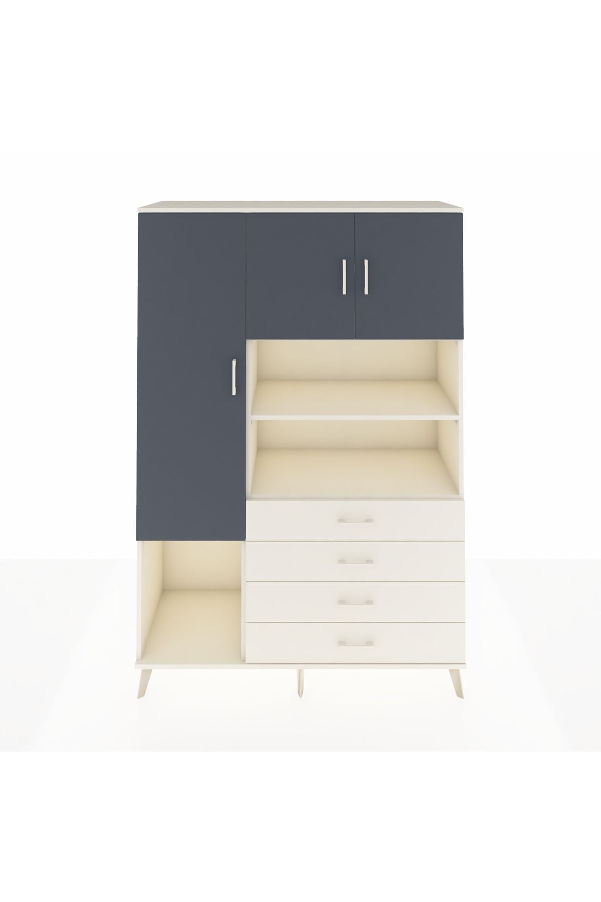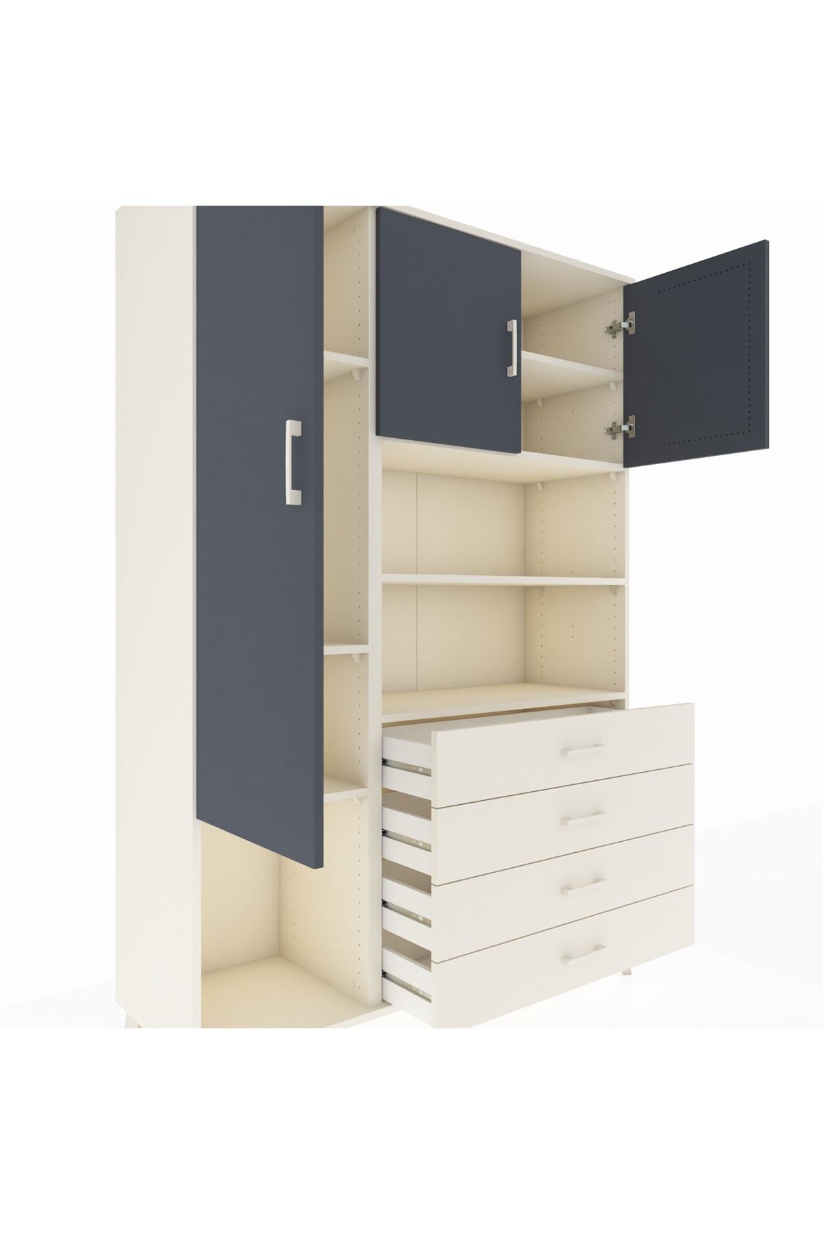 Hyperion Dolap 7 Raflı 4 Çekmeceli 3 Kapaklı 132x44x195 Aytaşı-Antrasit/Aytaşı