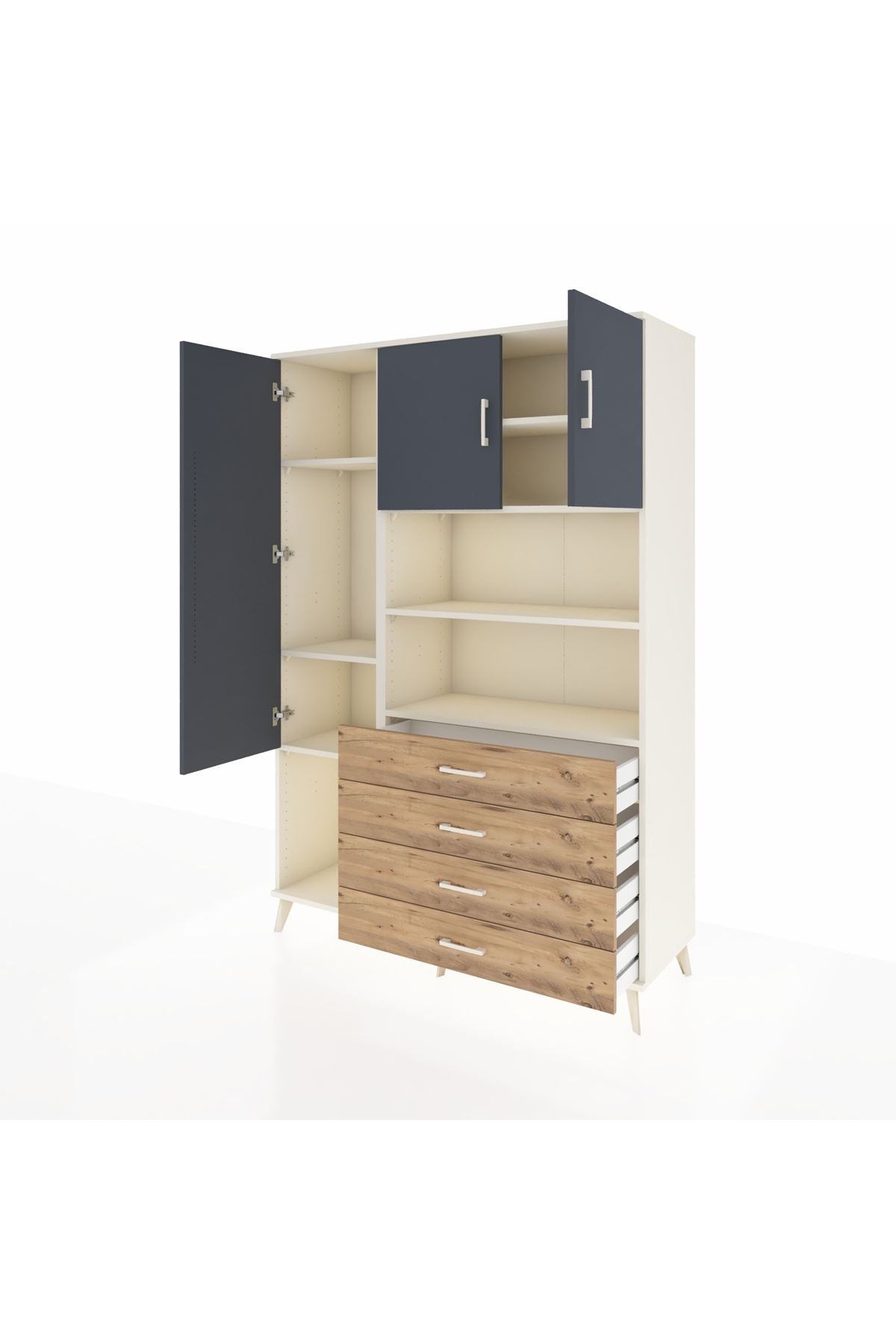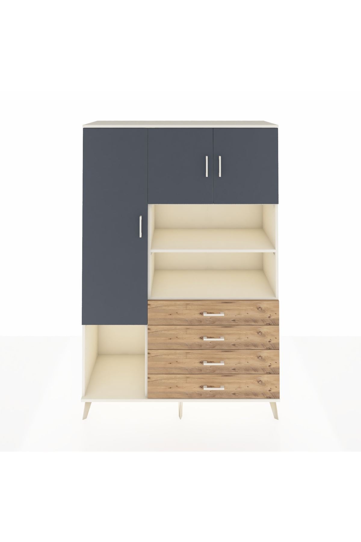 Hyperion Dolap 7 Raflı 4 Çekmeceli 3 Kapaklı 132x44x195 Aytaşı-Antrasit/Çam