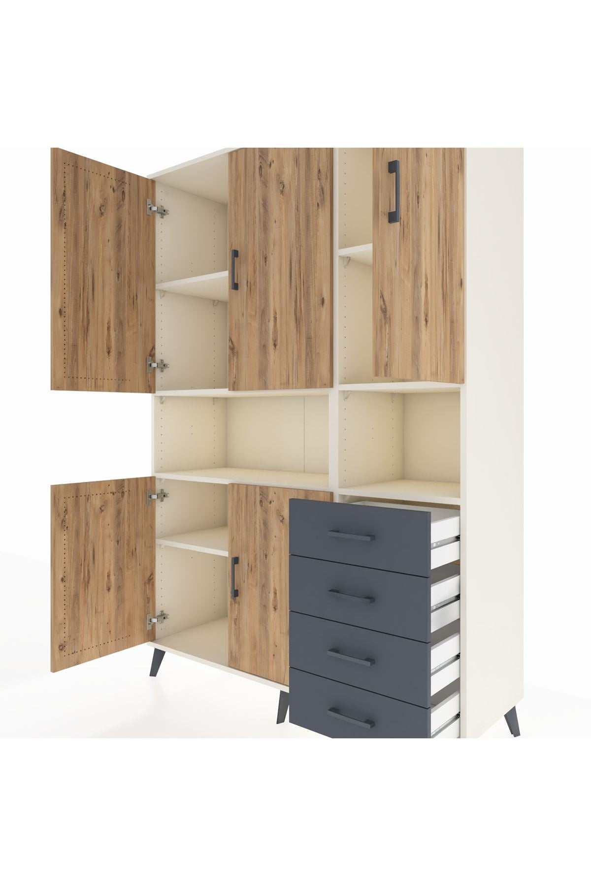 Hyperion Dolap 7 Raflı 4 Çekmeceli 5 Kapaklı 132x44x195 Aytaşı-Çam/Antrasit