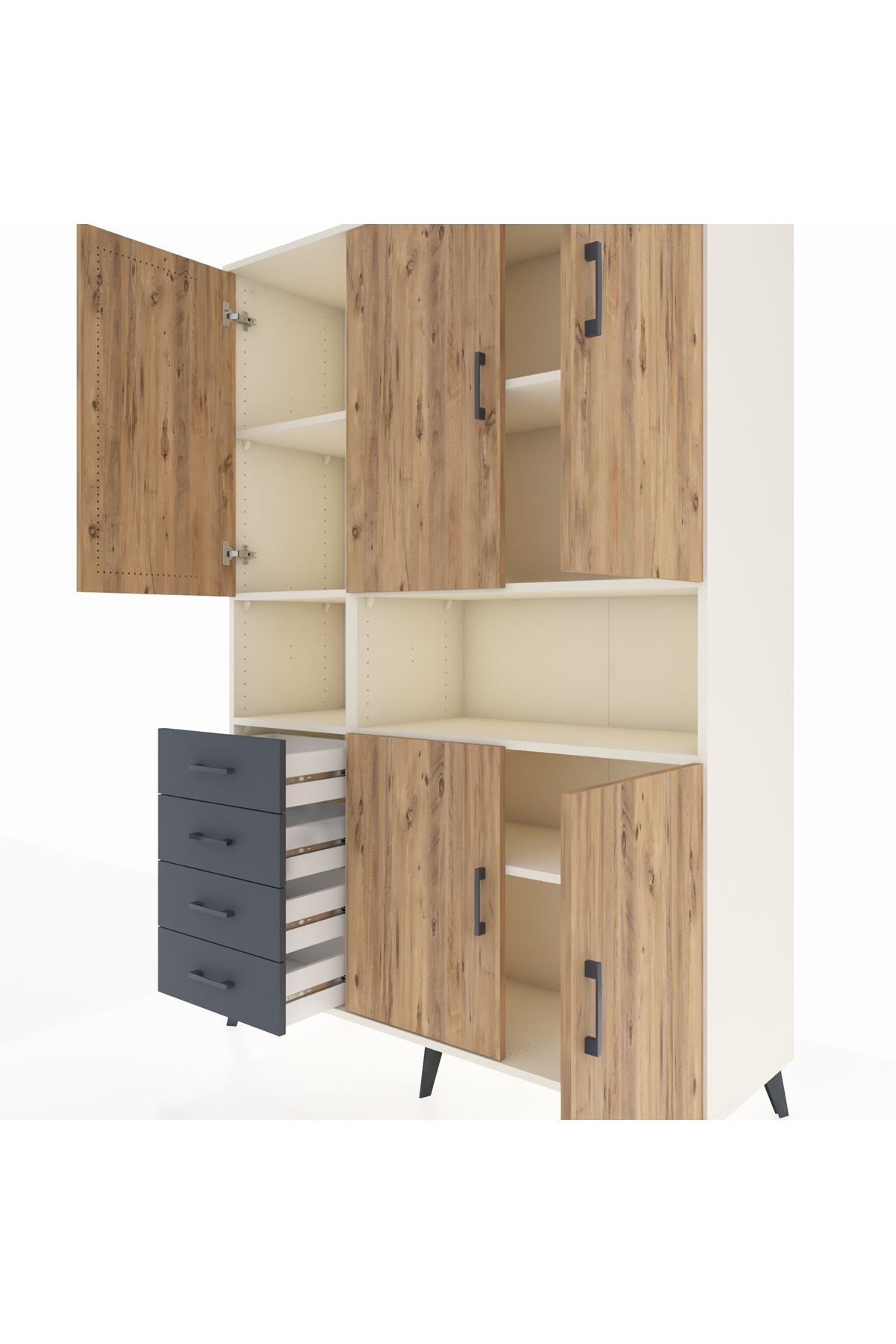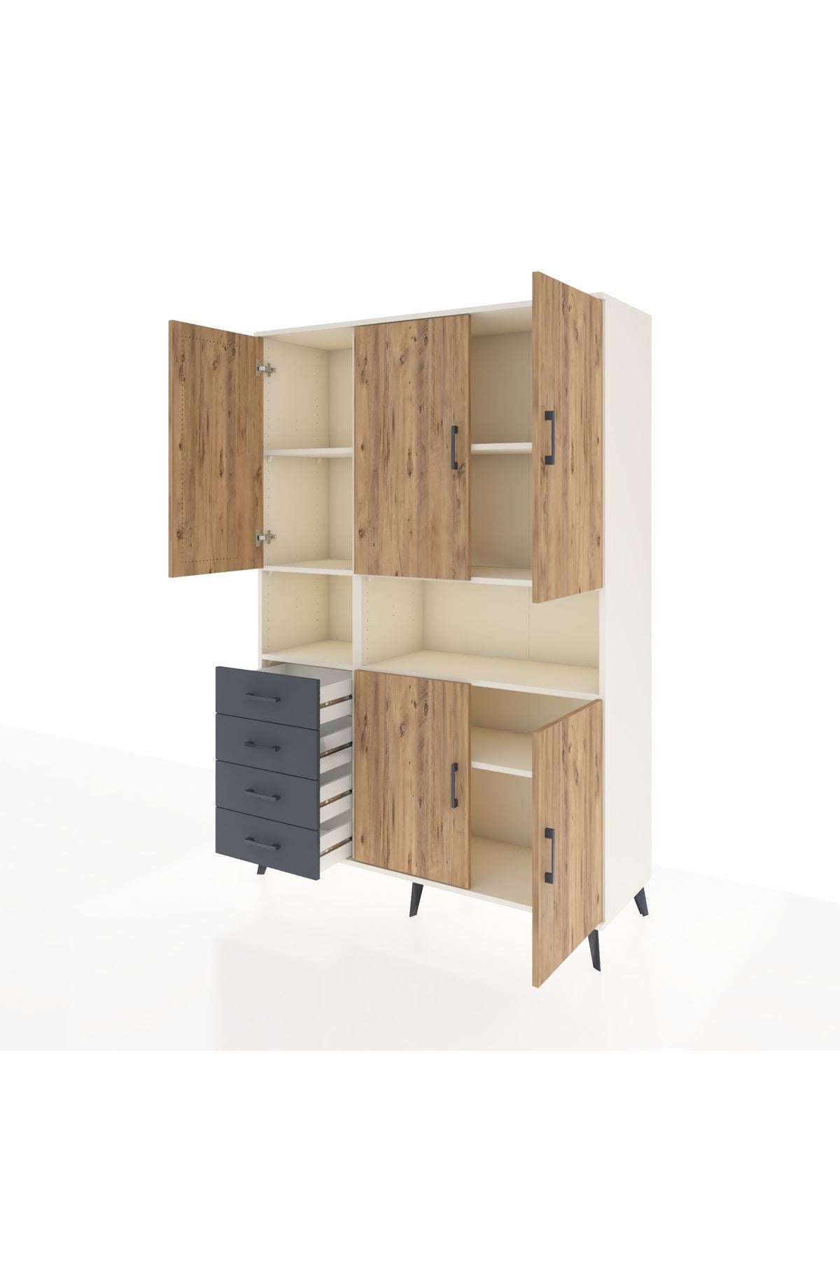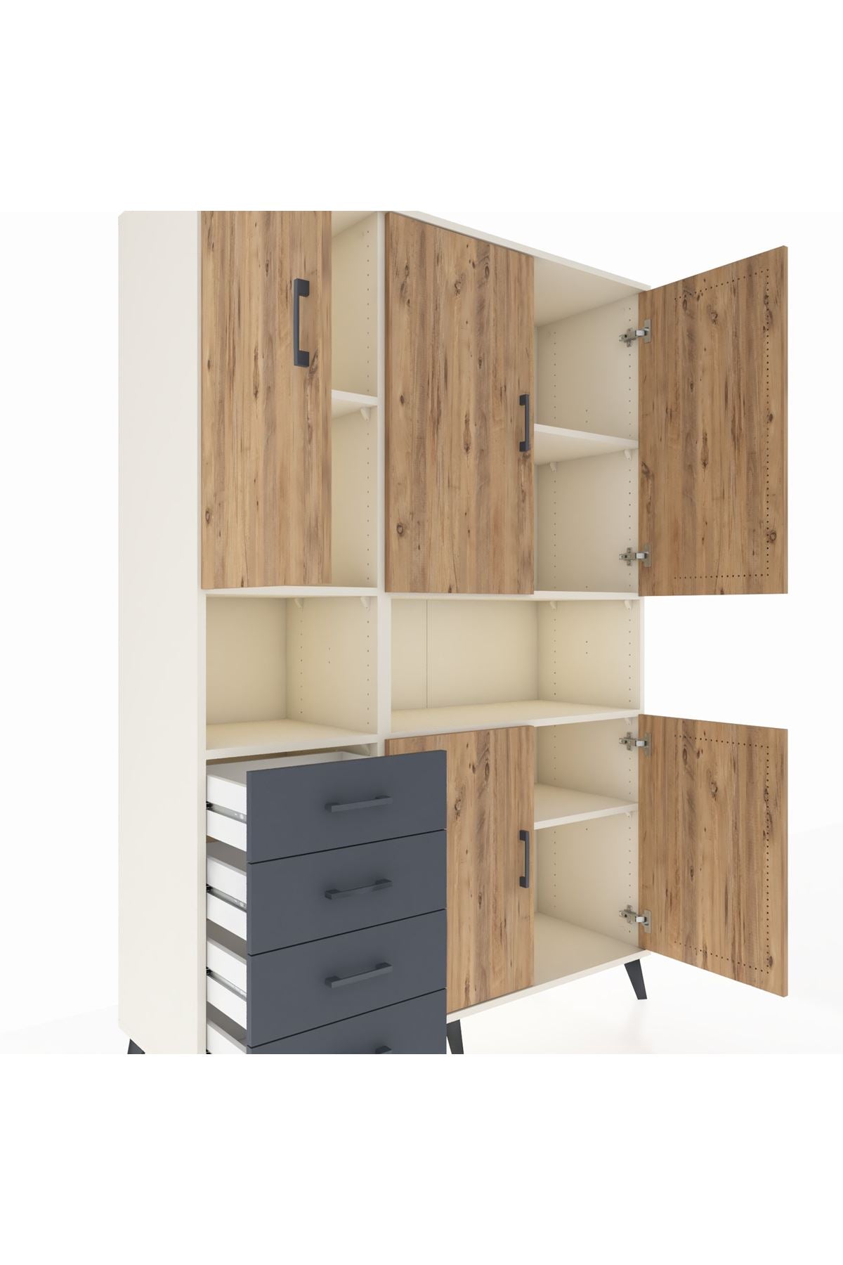 Hyperion Dolap 7 Raflı 4 Çekmeceli 5 Kapaklı 132x44x195 Aytaşı-Çam/Antrasit