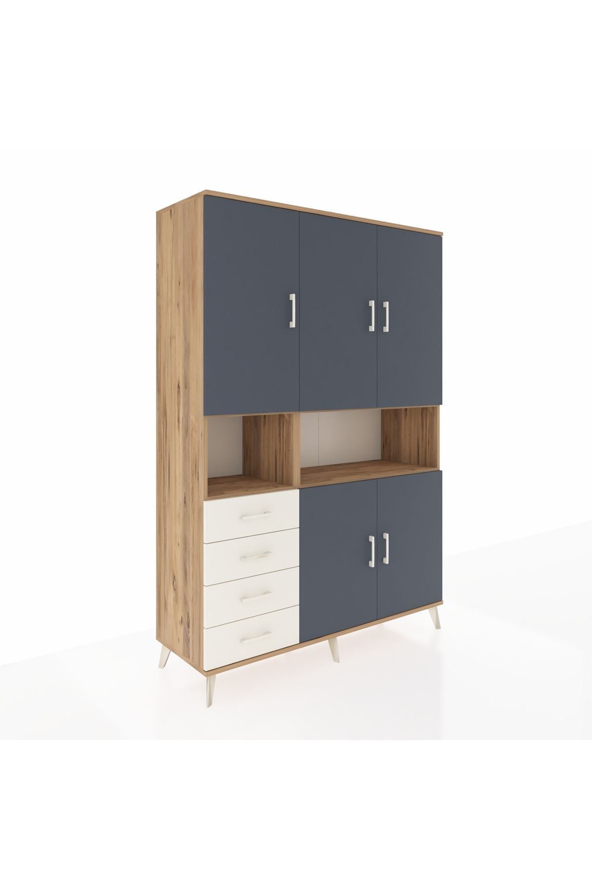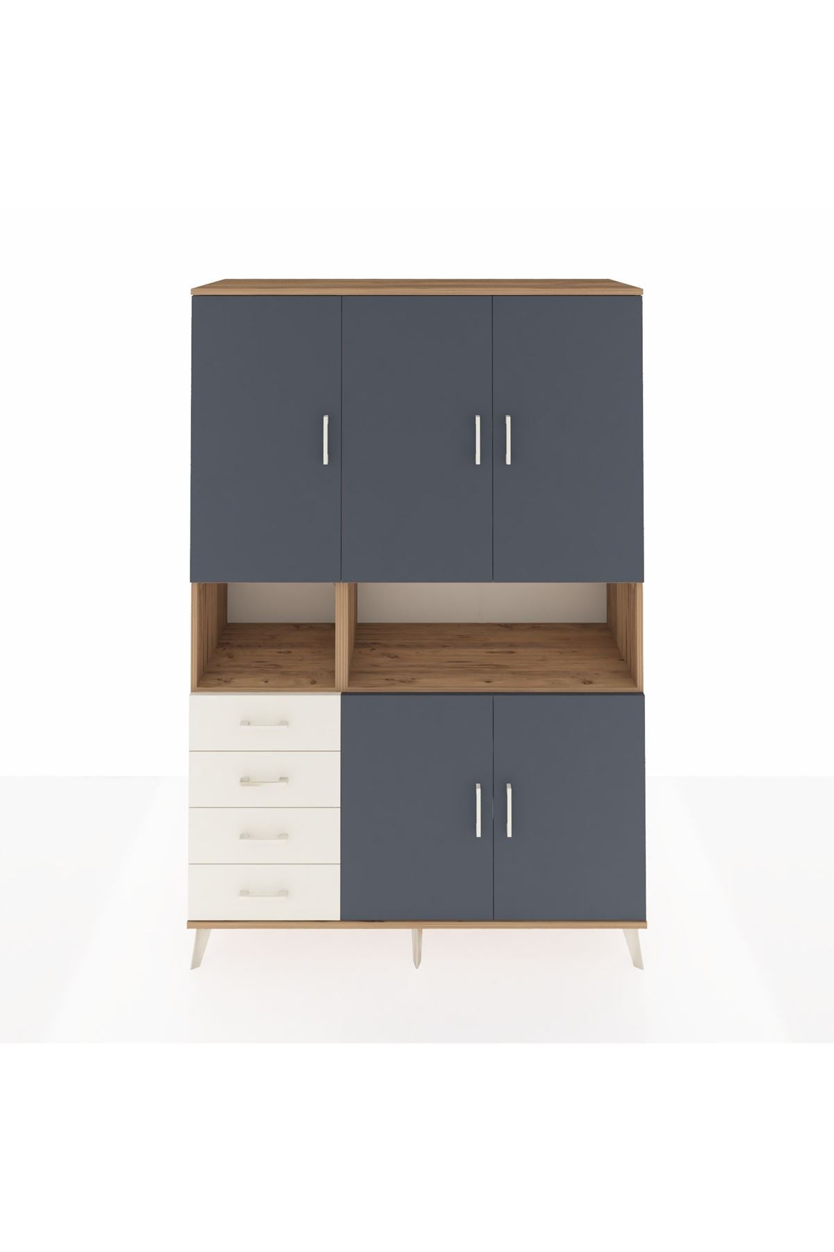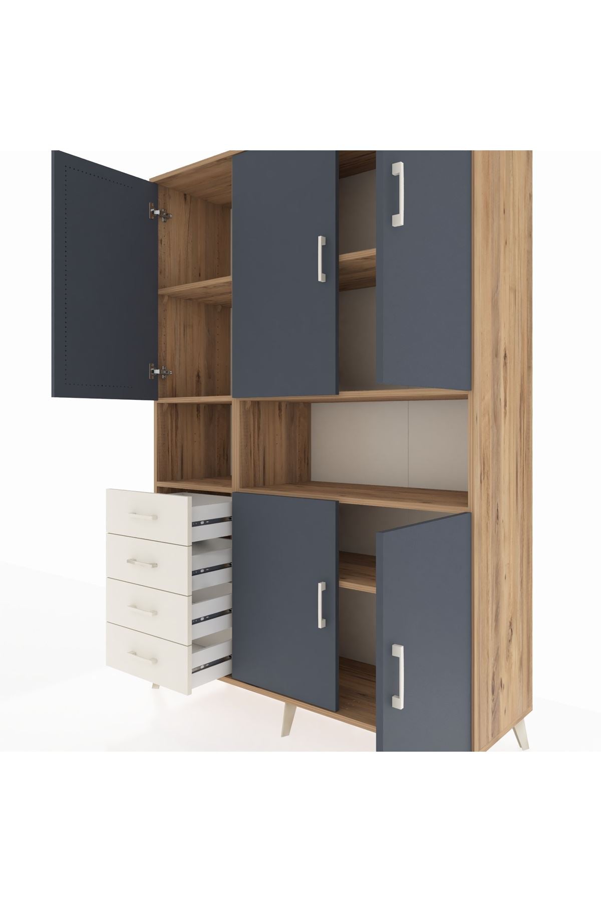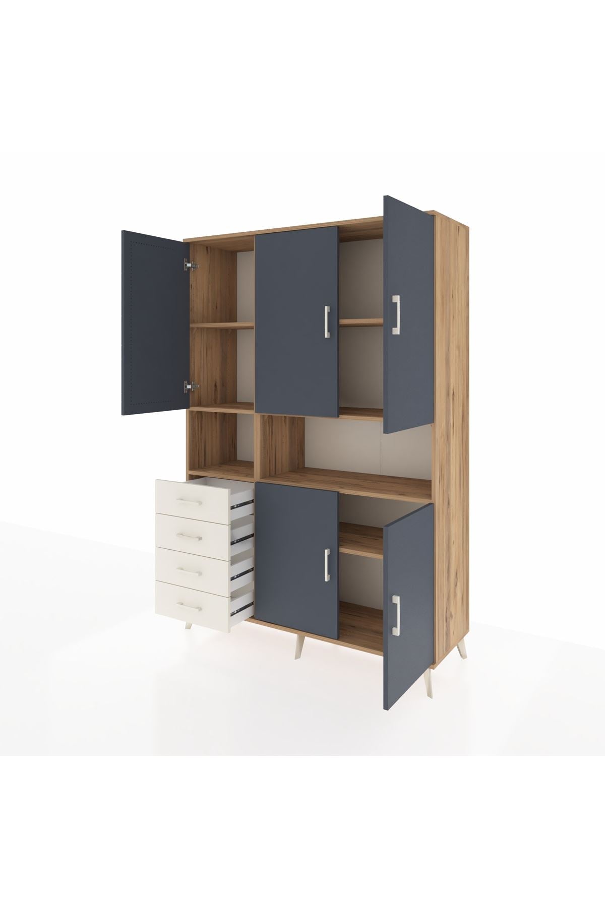 Hyperion Dolap 7 Raflı 4 Çekmeceli 5 Kapaklı 132x44x195 Çam-Antrasit/Aytaşı
