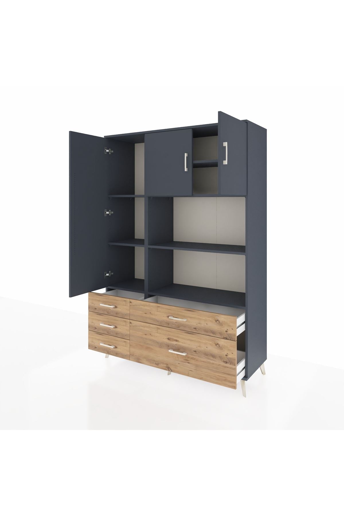 Hyperion Dolap 7 Raflı 5 Çekmeceli 3 Kapaklı 132x44x195 Antrasit-Antrasit/Çam