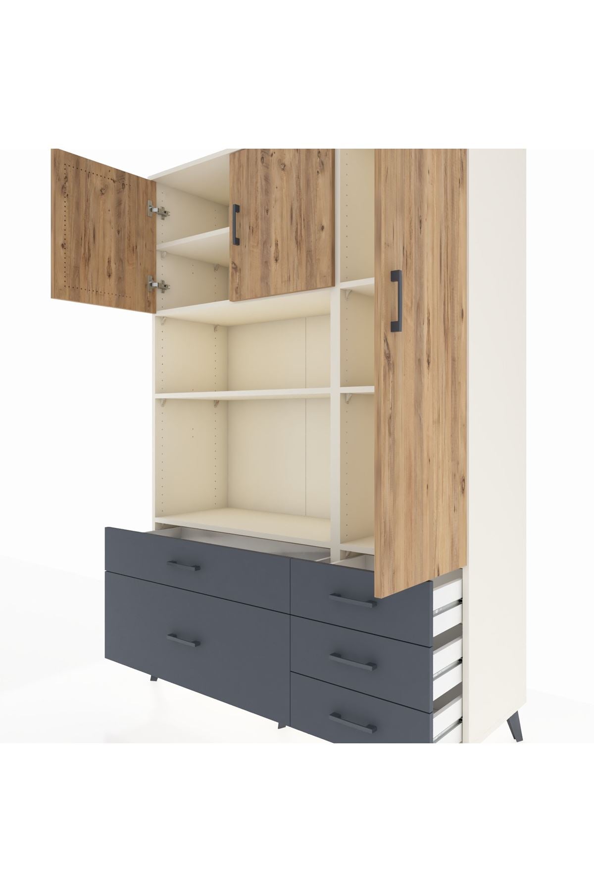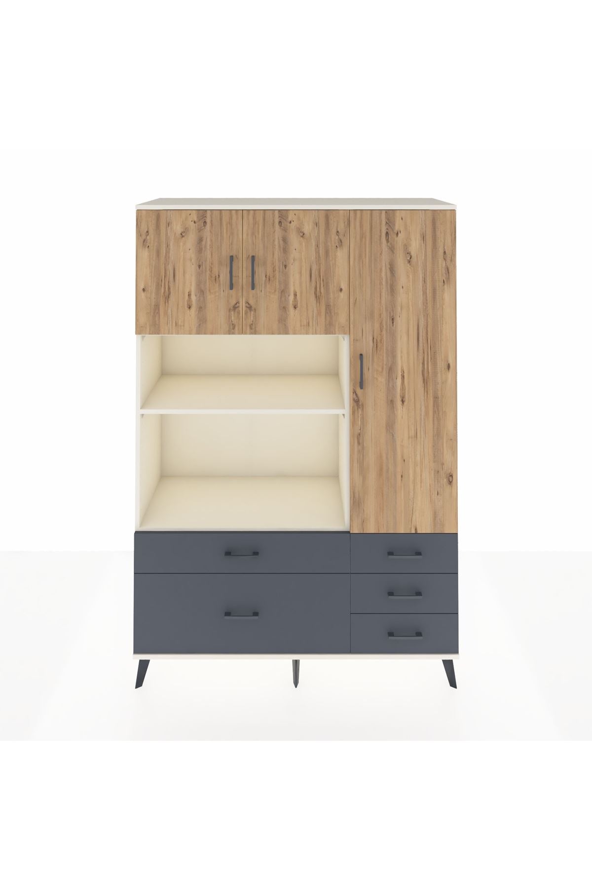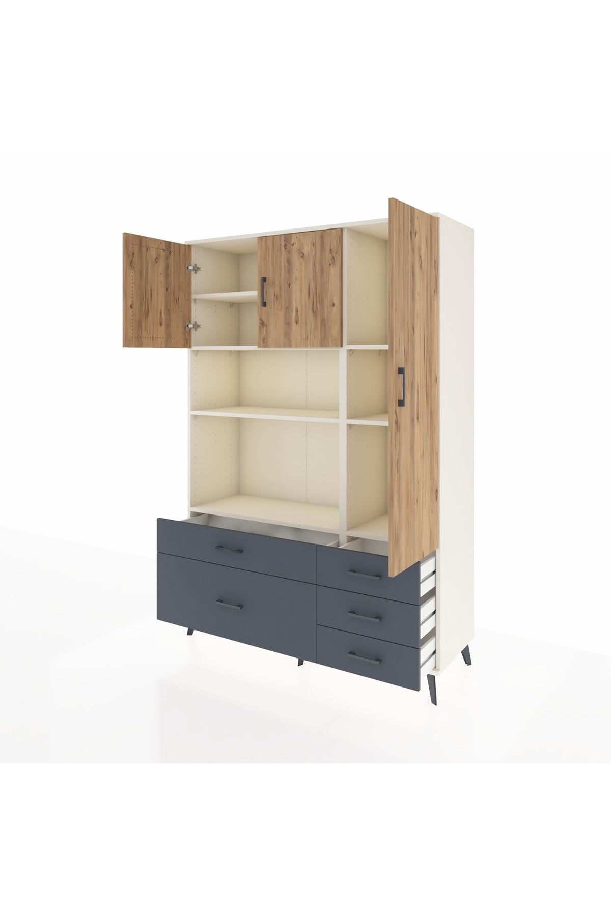 Hyperion Dolap 7 Raflı 5 Çekmeceli 3 Kapaklı 132x44x195 Aytaşı-Çam/Antrasit