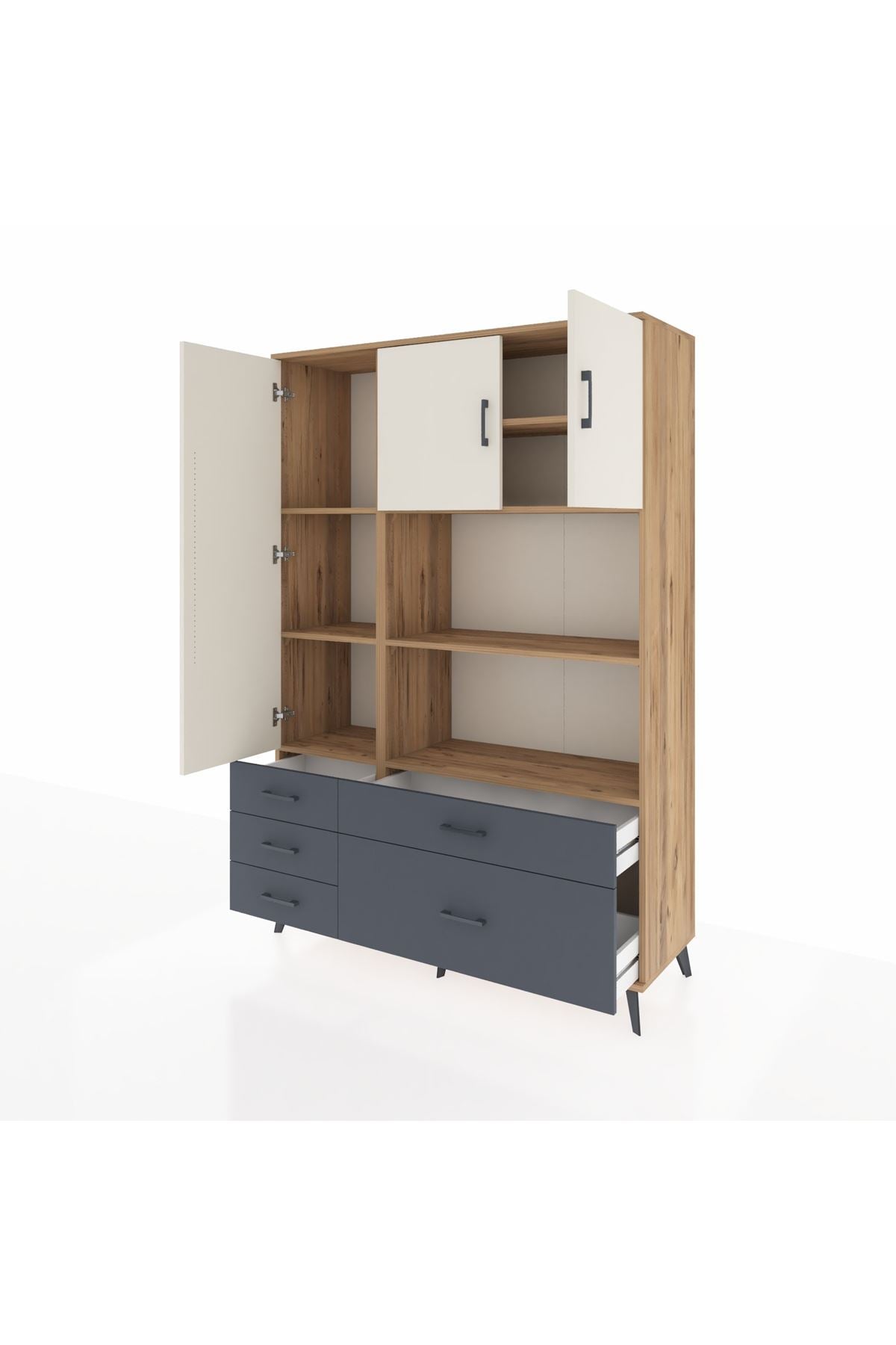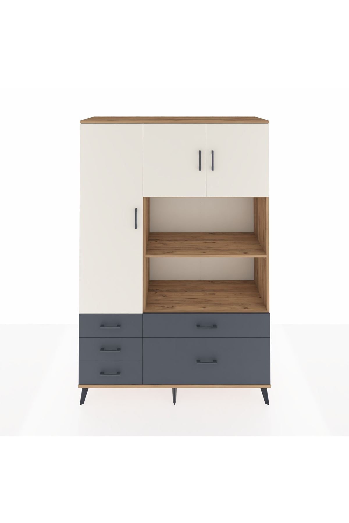 Hyperion Dolap 7 Raflı 5 Çekmeceli 3 Kapaklı 132x44x195 Çam-Aytaşı/Antrasit