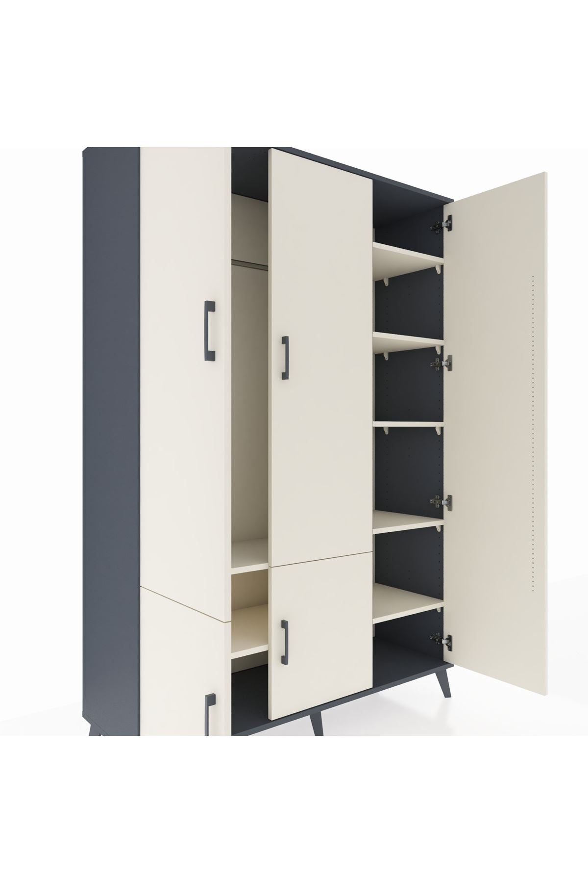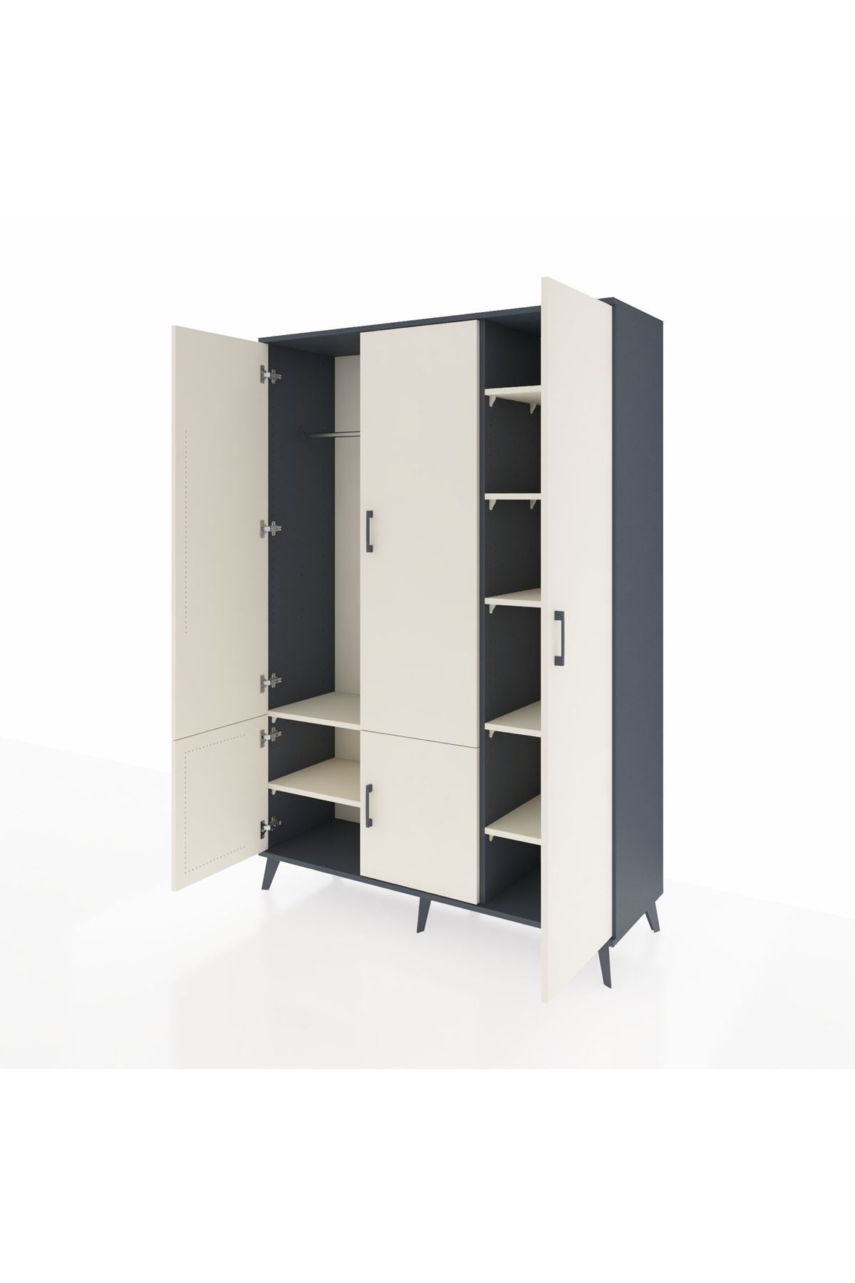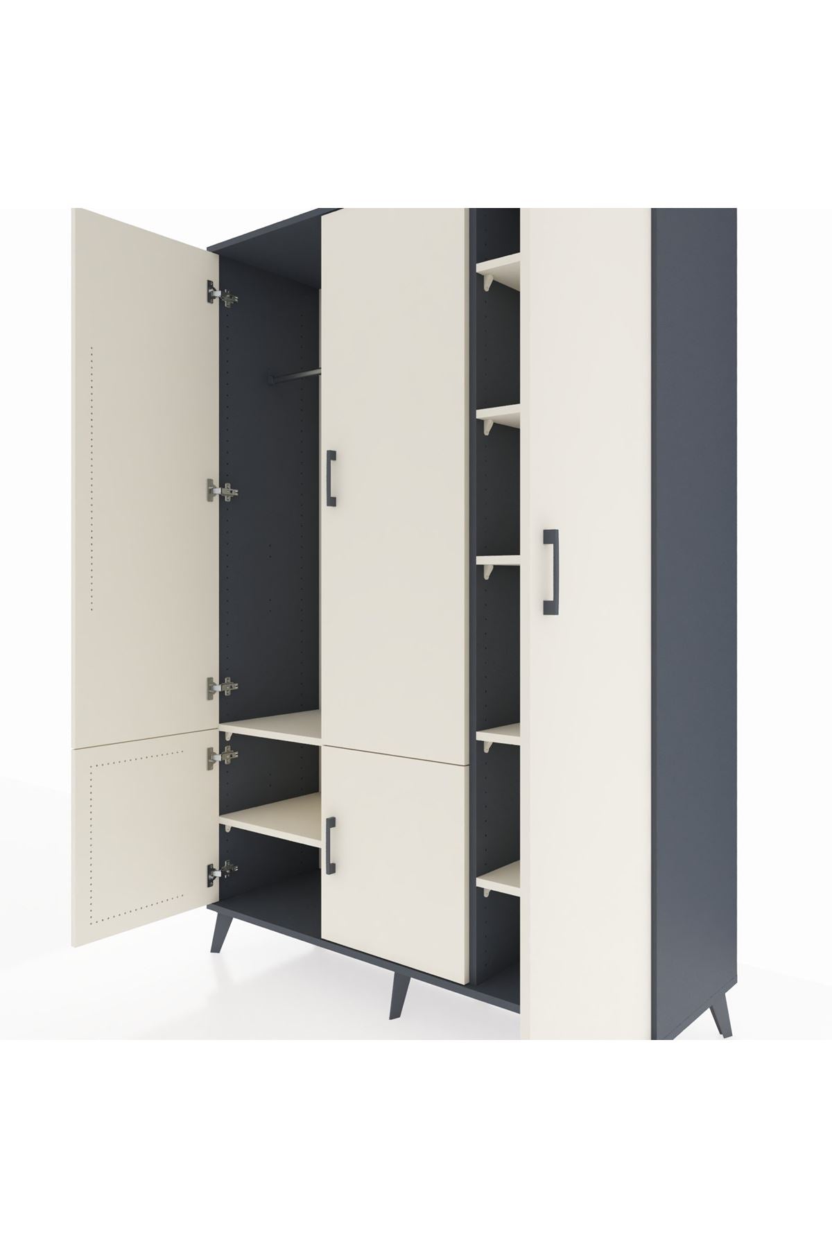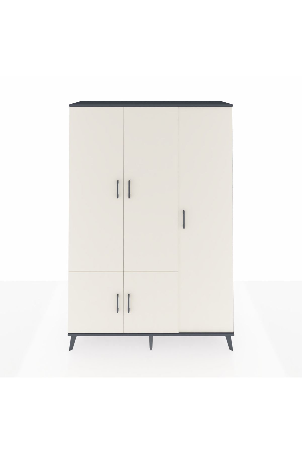Hyperion Dolap 7 Raflı 5 Kapaklı Tek Askılı 132x44x195 Antrasit-Aytaşı/Aytaşı