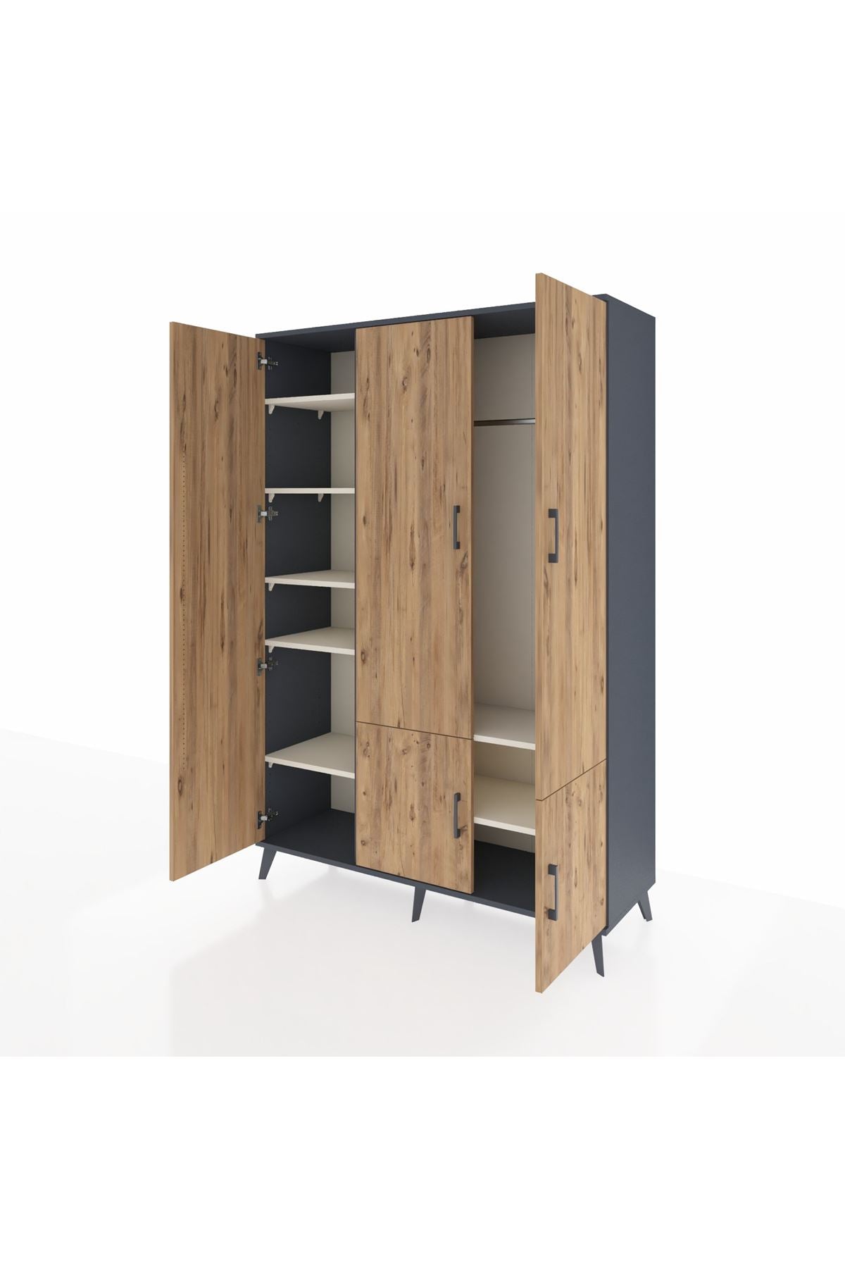 Hyperion Dolap 7 Raflı 5 Kapaklı Tek Askılı 132x44x195 Antrasit-Çam/Aytaşı