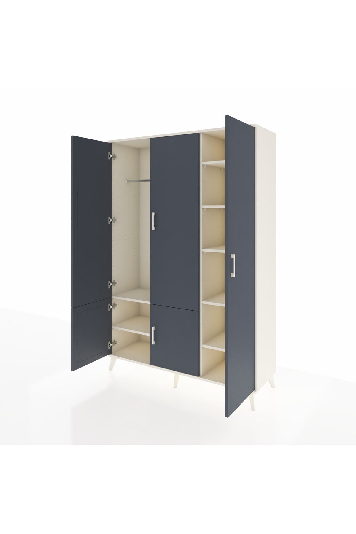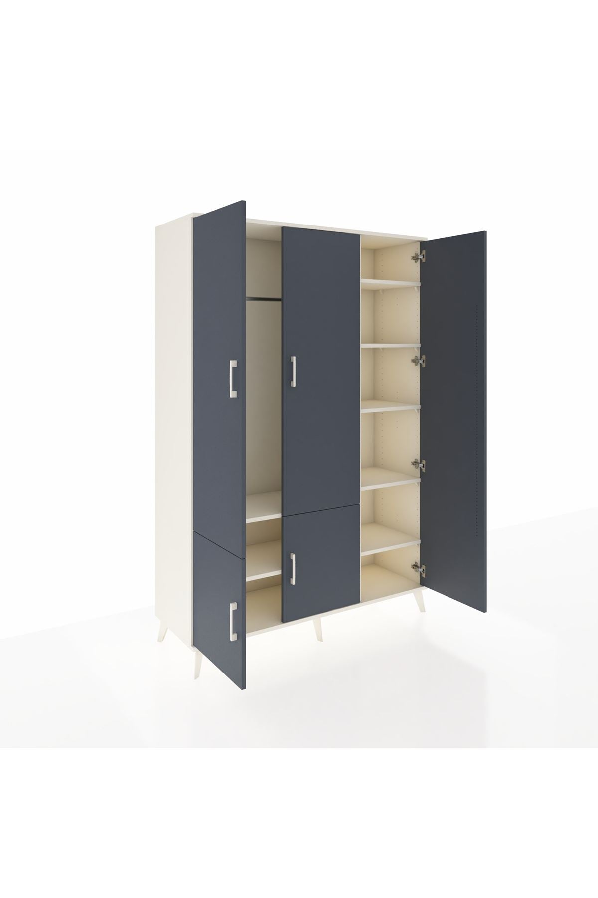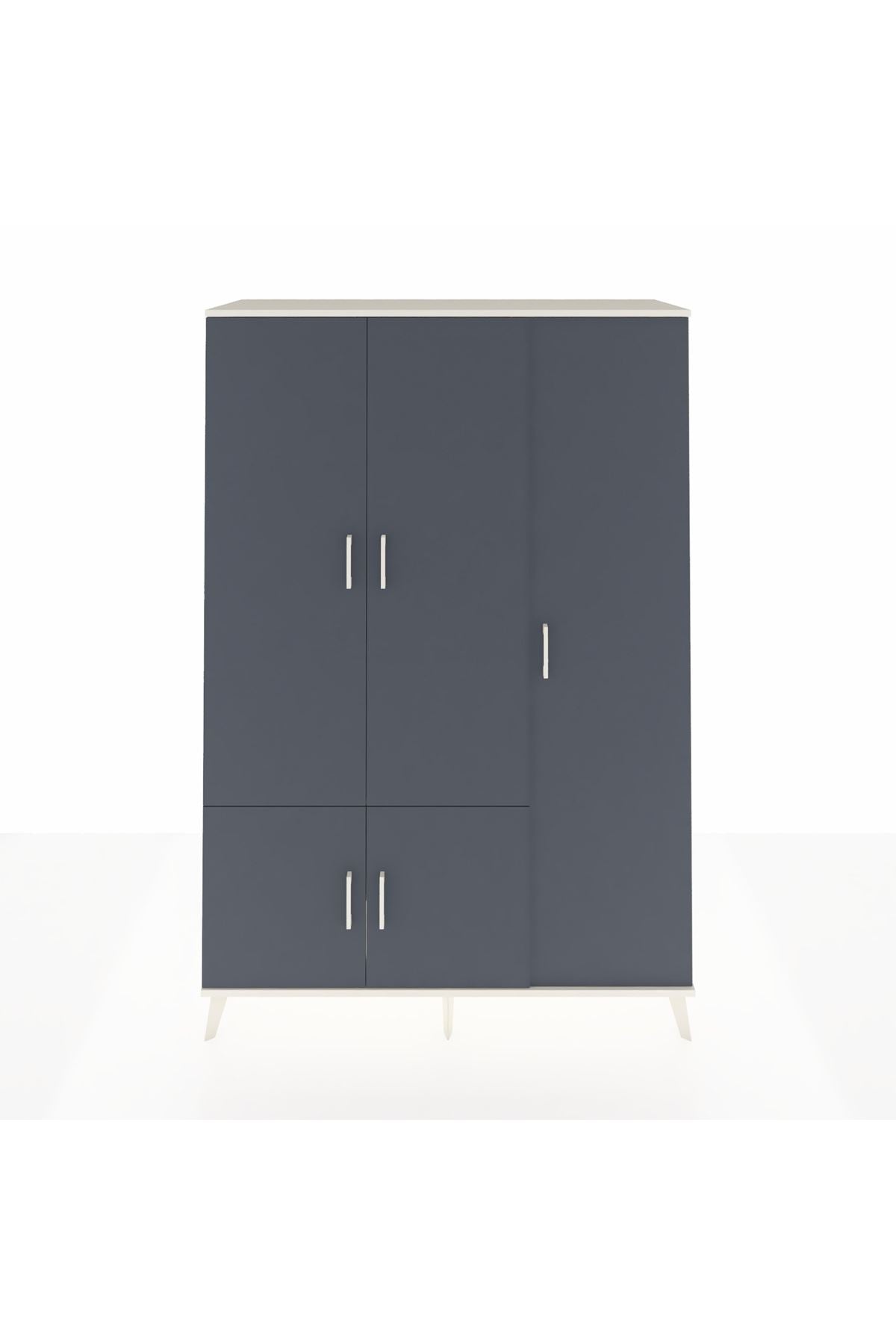Hyperion Dolap 7 Raflı 5 Kapaklı Tek Askılı 132x44x195 Aytaşı-Antrasit/Aytaşı