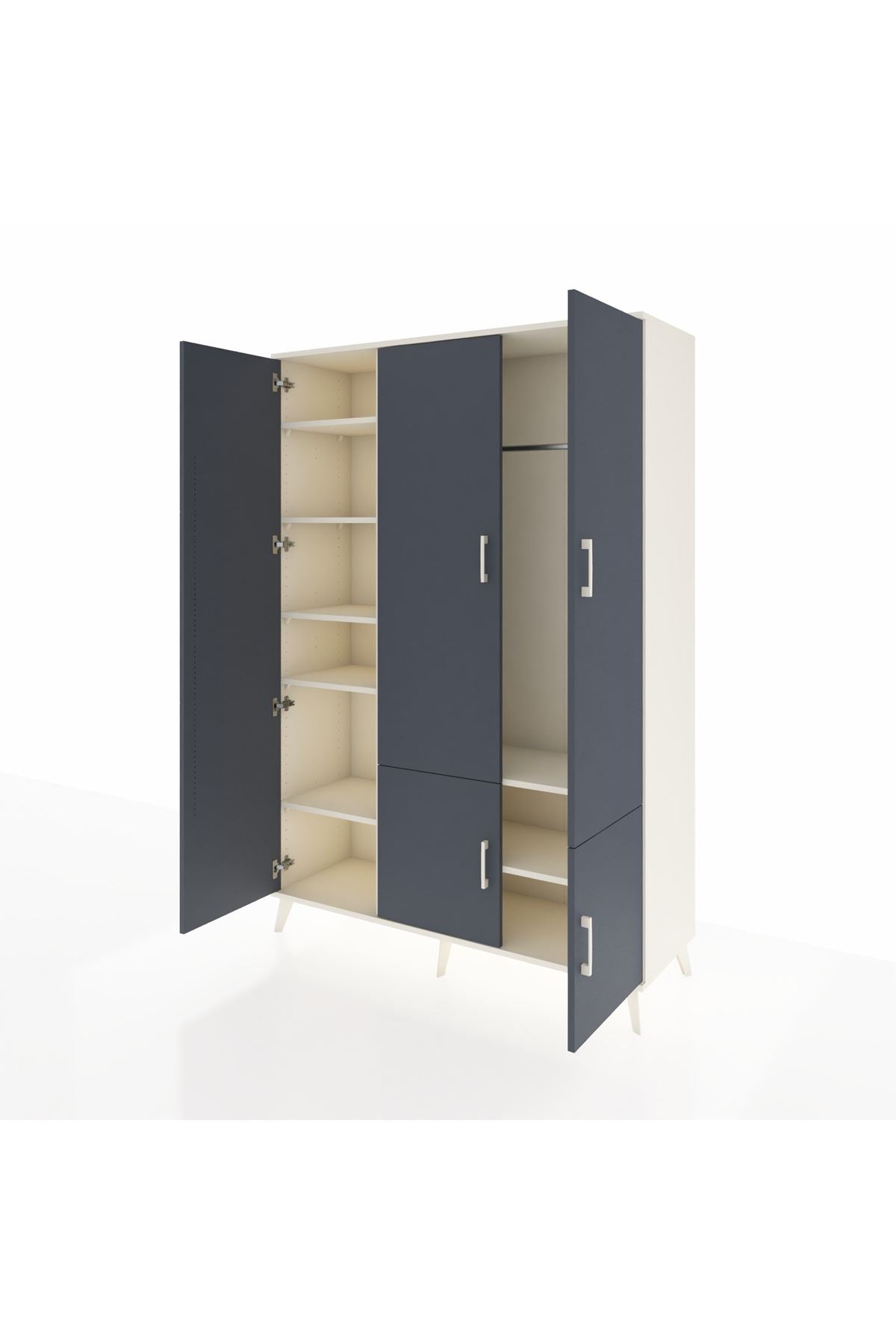 Bu dolap, evinizde düzenli ve şık depolama alanı sağlar. Ayarlanabilir raf düzeni sayesinde farklı ebatlardaki eşyalarınızı ergonomik biçimde saklamanıza olanak verir. Aytaşı, antrasit ve atlas çam renk kombinasyonları mekâna modern bir dokunuş sunar. Metal ayaklar zeminle sağlam bağlantı kurar; metal kulplar ise uzun ömürlü ve güvenilir kullanım sağlar. 7 raflı, 5 kapaklı ve tek askılı tasarım, kıyafet, ayakkabı, temizlik gereçleri veya dış mekan aksesuarları için çok yönlü depolama sunar.