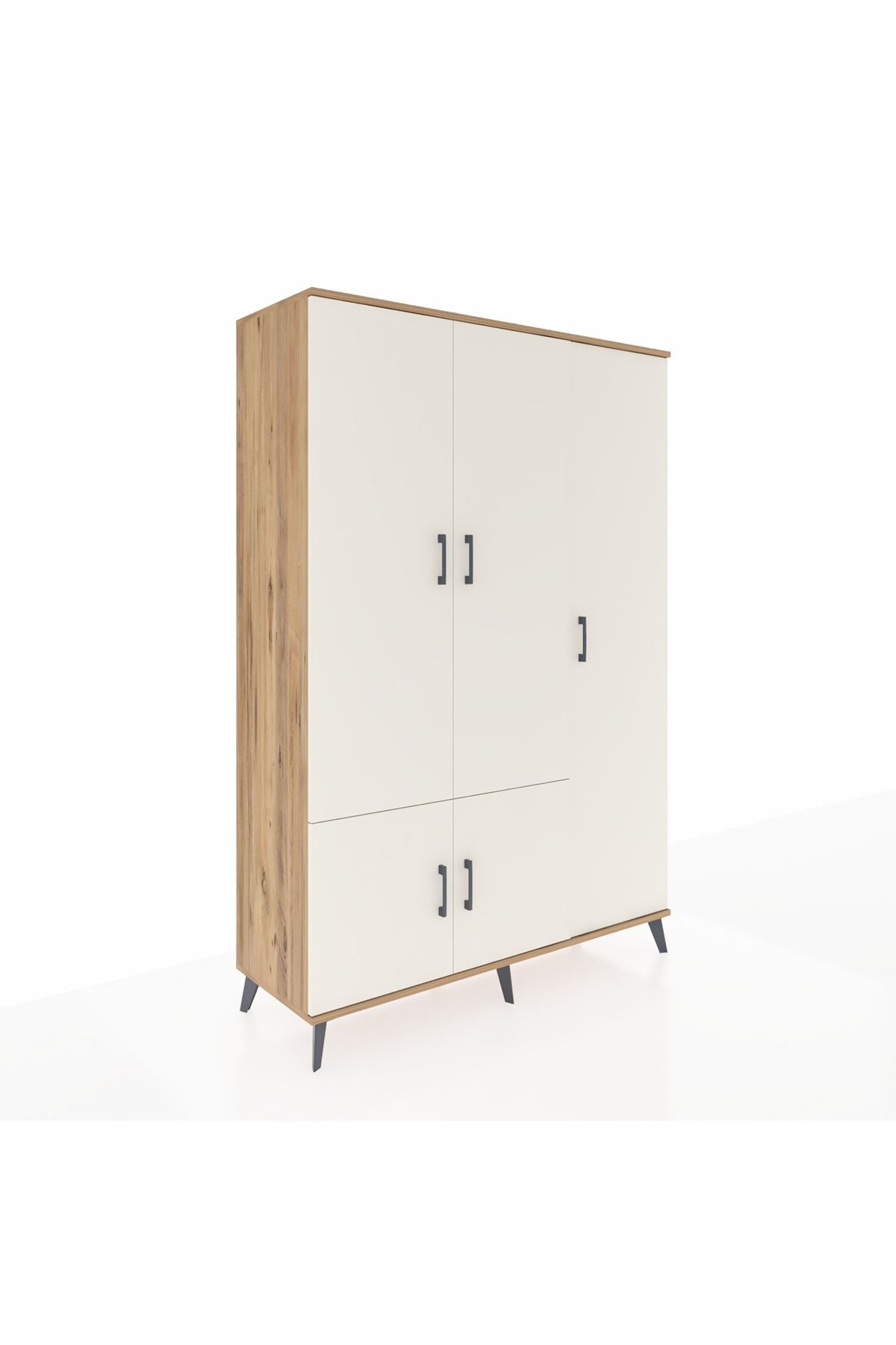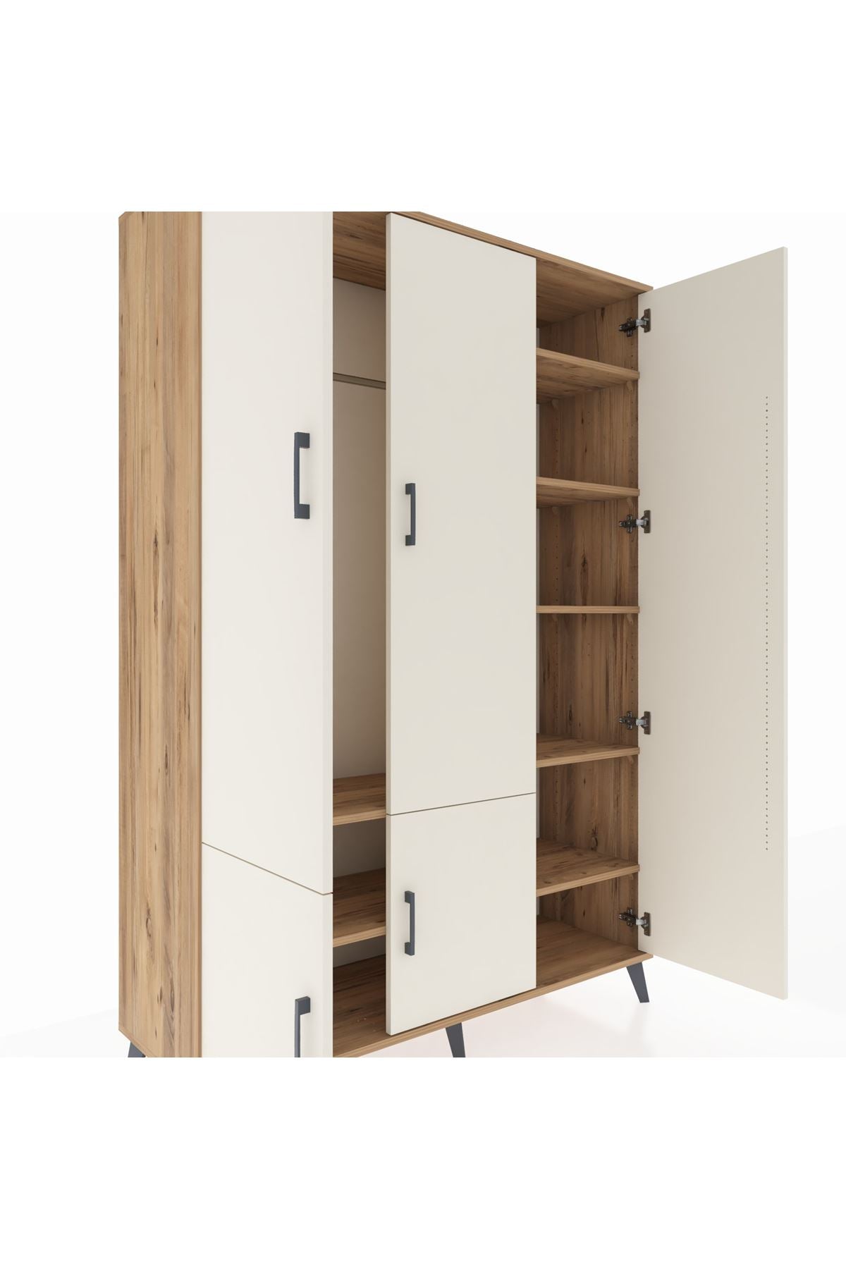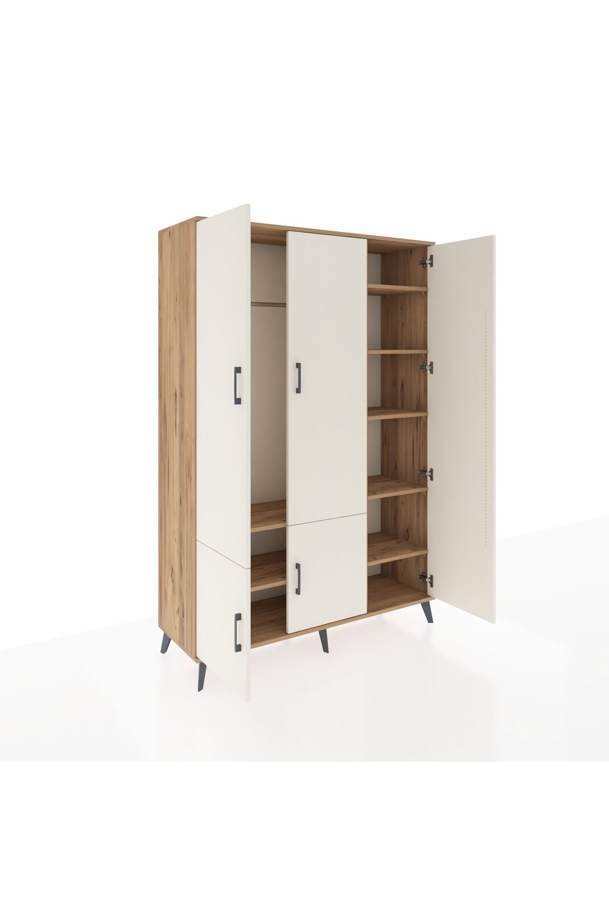 Hyperion Dolap 7 Raflı 5 Kapaklı Tek Askılı 132x44x195 Çam-Aytaşı/Çam