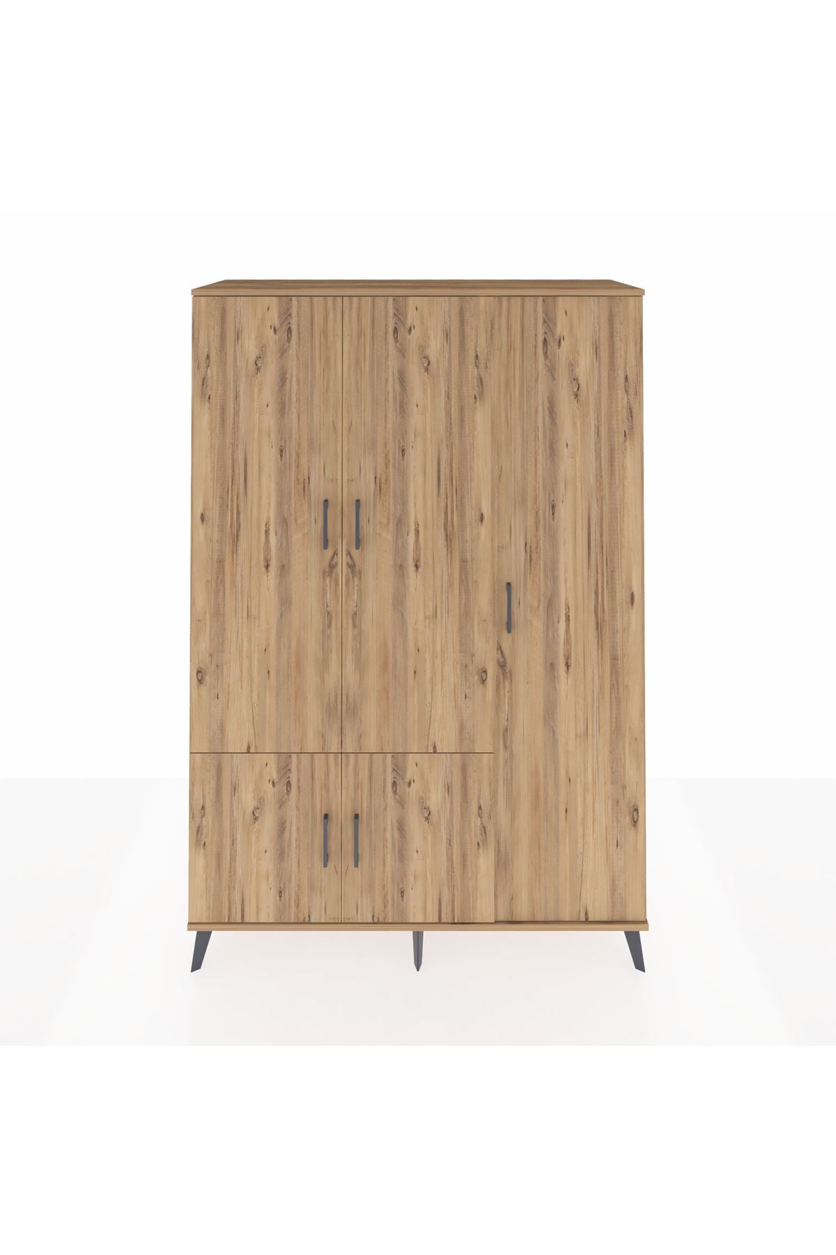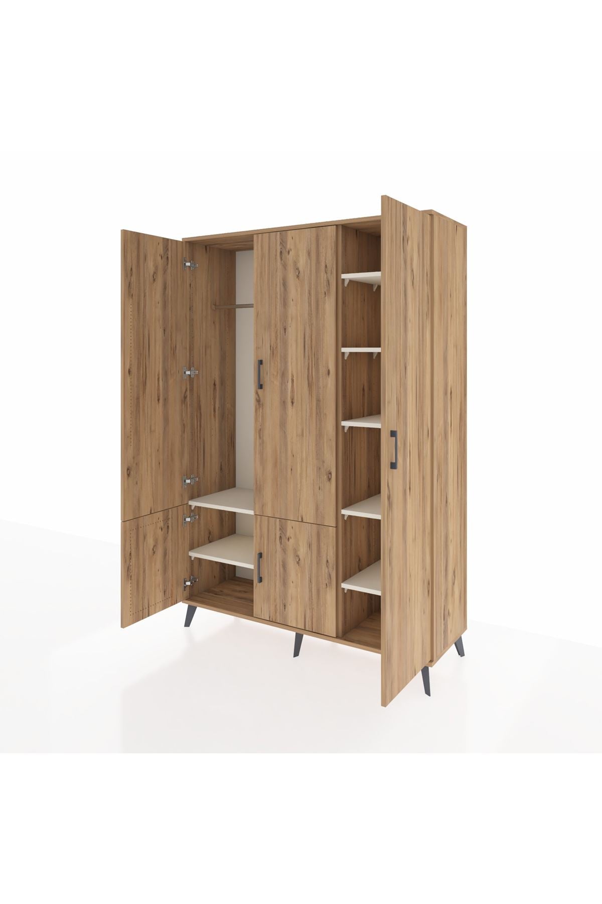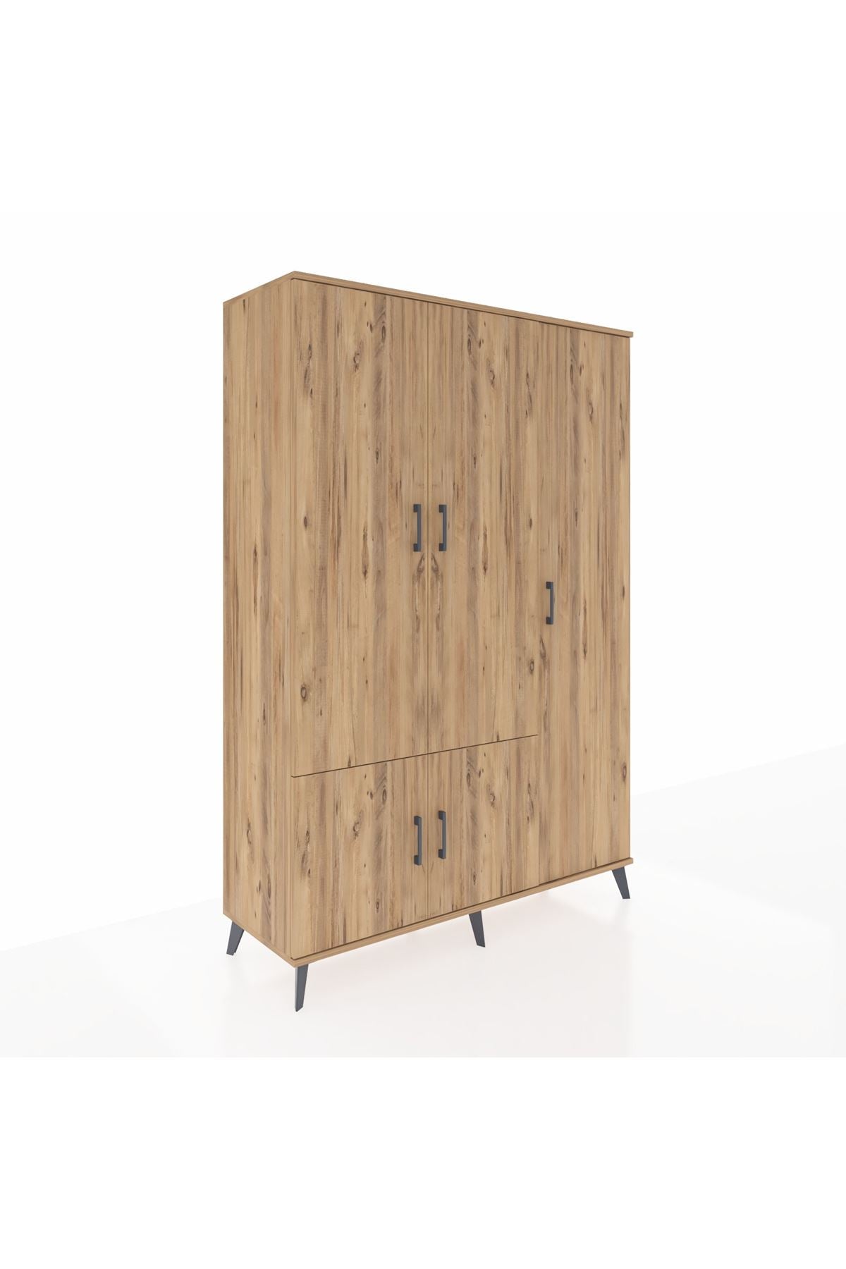 Hyperion Dolap 7 Raflı 5 Kapaklı Tek Askılı 132x44x195 Çam-Çam/Aytaşı